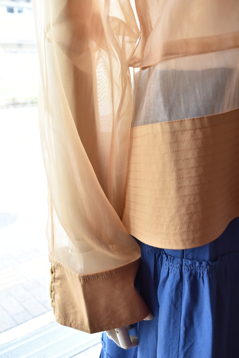上質なシースルー素材を上質なコットン生地との切り替えでミリタリージャケットをデザイン。