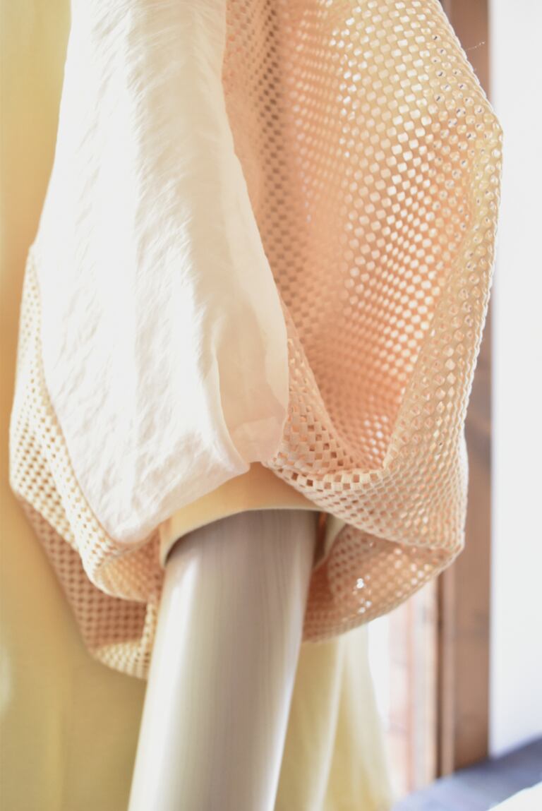 袖はソフトなオーガンジーを重ね透けすぎることなくふんわりと膨らむアイコニックなデザインです。