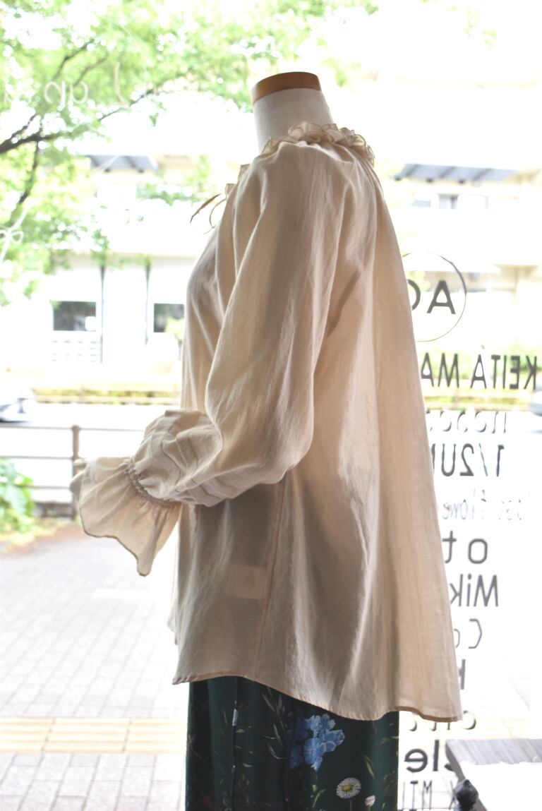 Bon vieux temps(ボンヴュータン) 25S/S 襟フリル前開きブラウス
