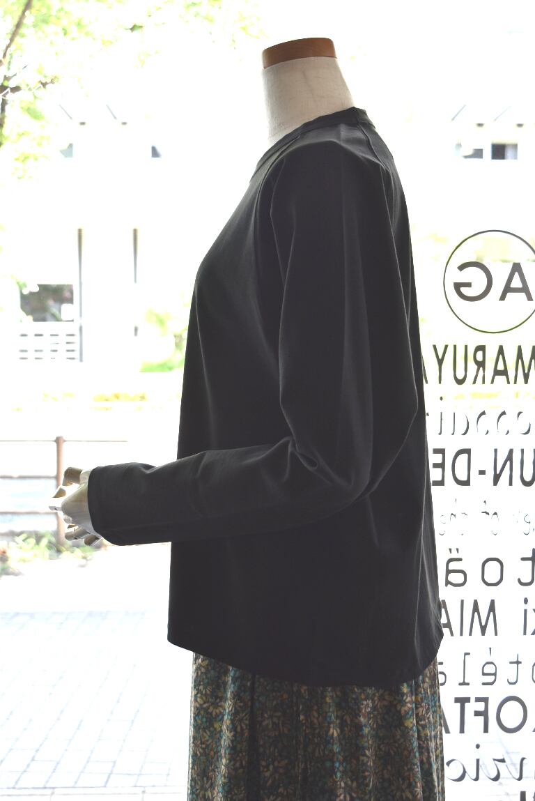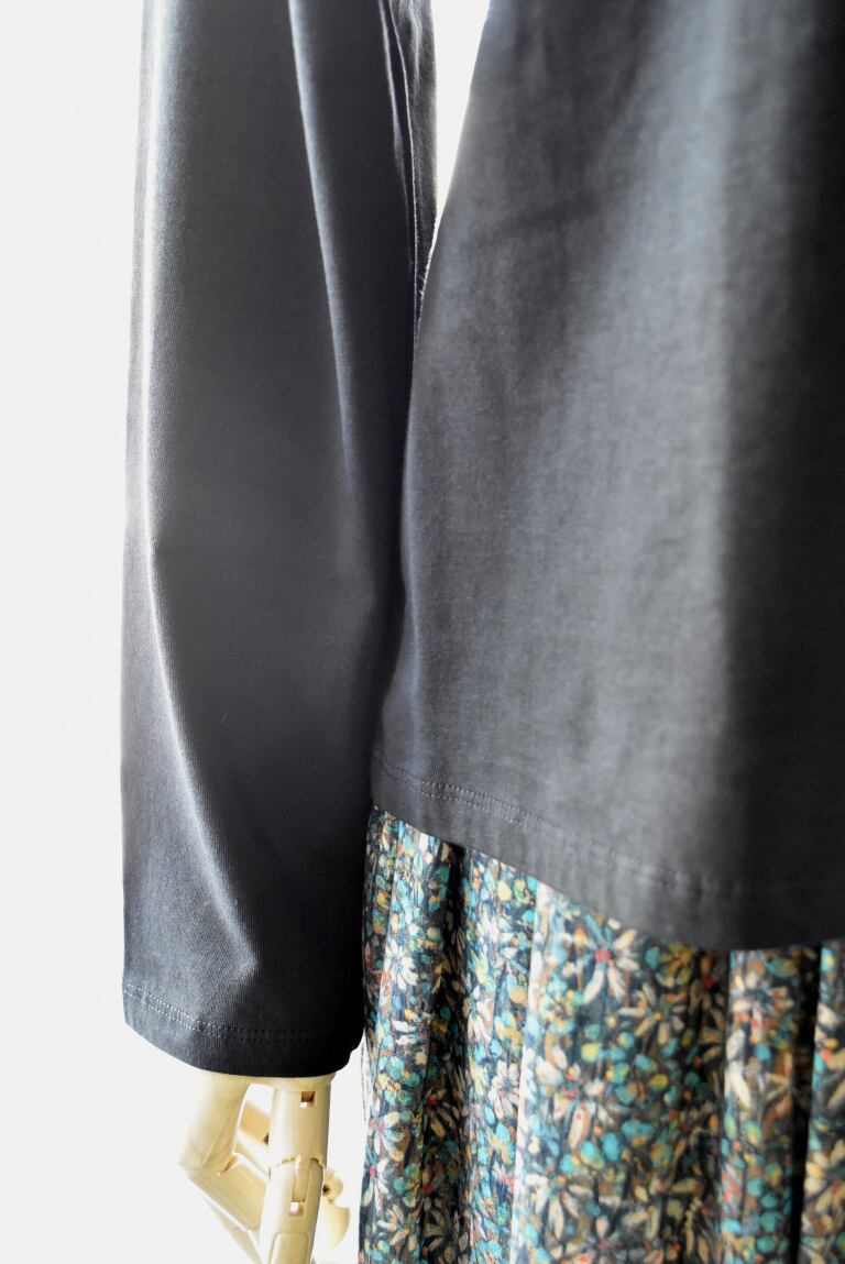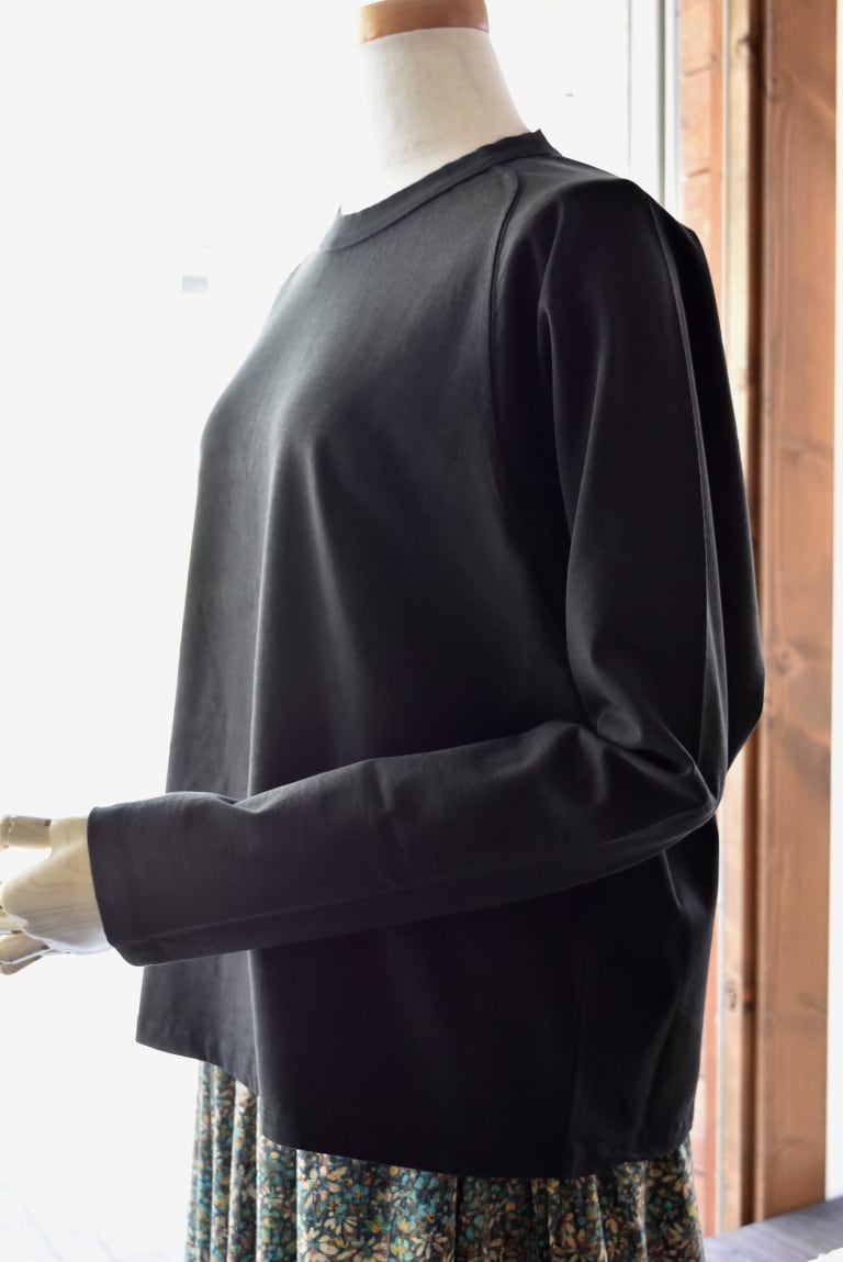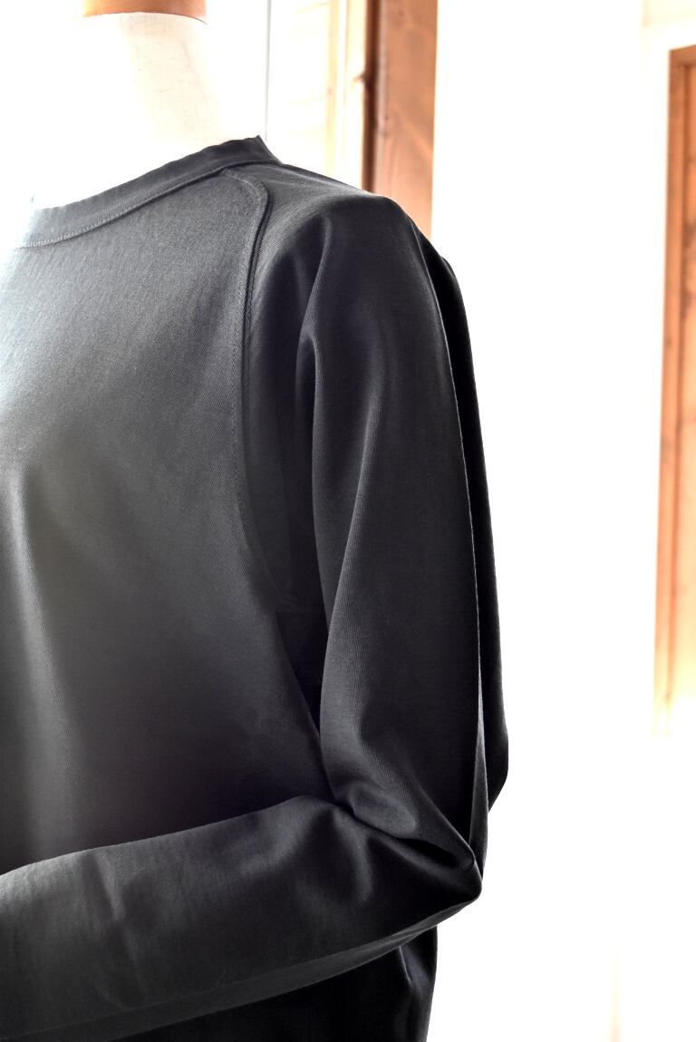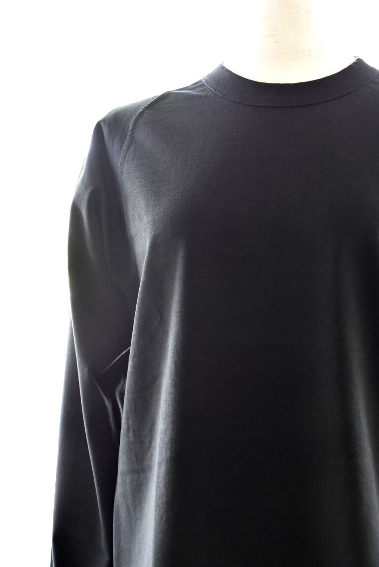Tシャツなのにまるで布帛のような表情を持ち、ひとたび肌を通せばカットソーの極上の肌触りとドレープ感を感じていただける1品です。