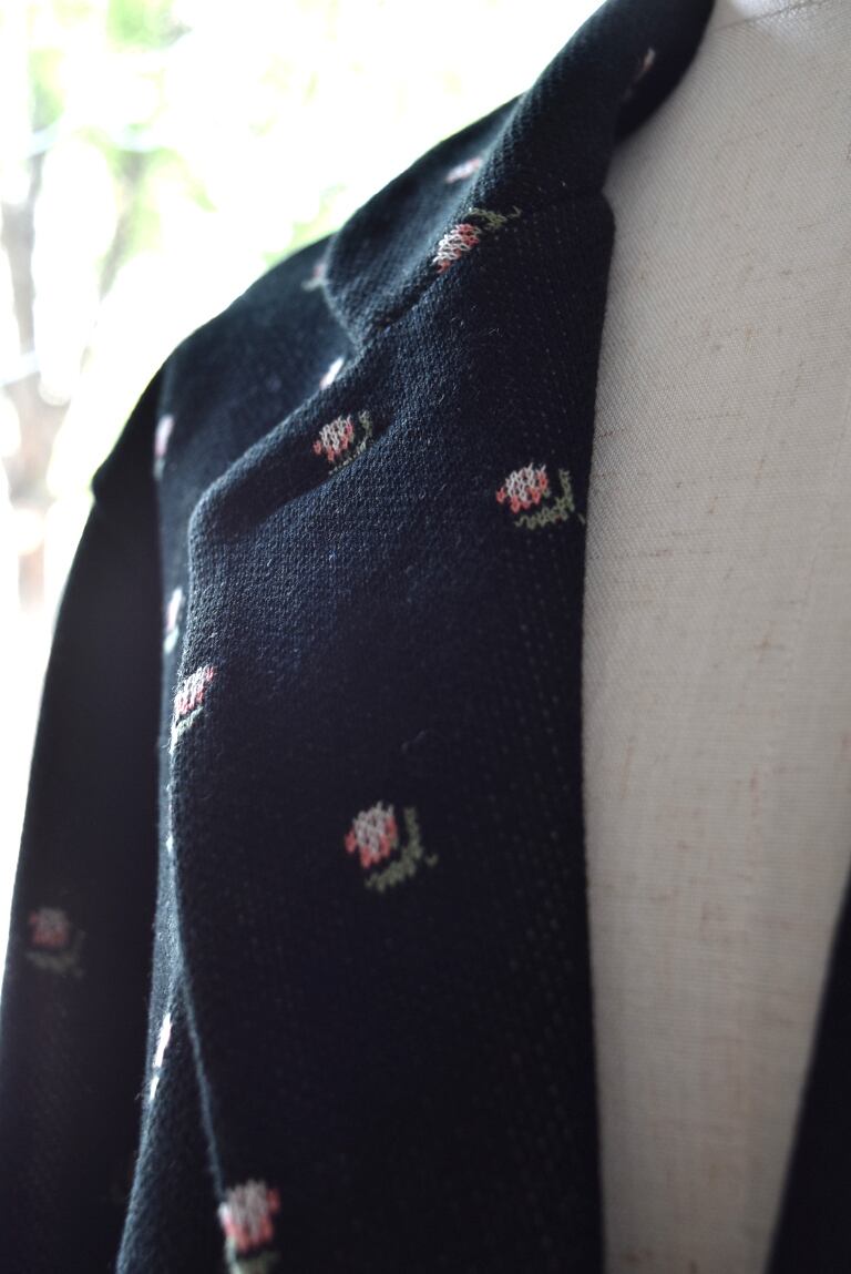 クロスステッチ刺繍柄をニットジャガードにしたデザイン。