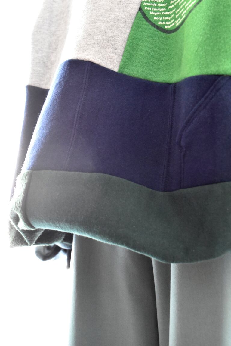 切り替えだけのリメイクスウェットではなく、形もシルエットも他にないリメイクスウェットに仕上げています。