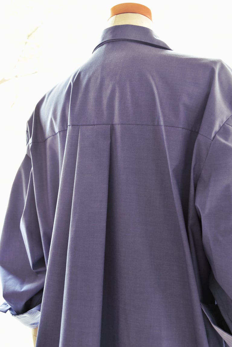 前身頃のみ2枚仕立てにすることで、後ろ身頃はすっきりとしたシルエットに。