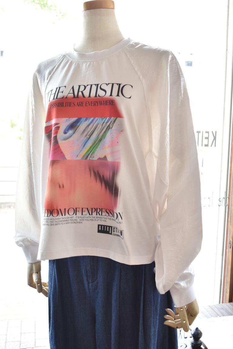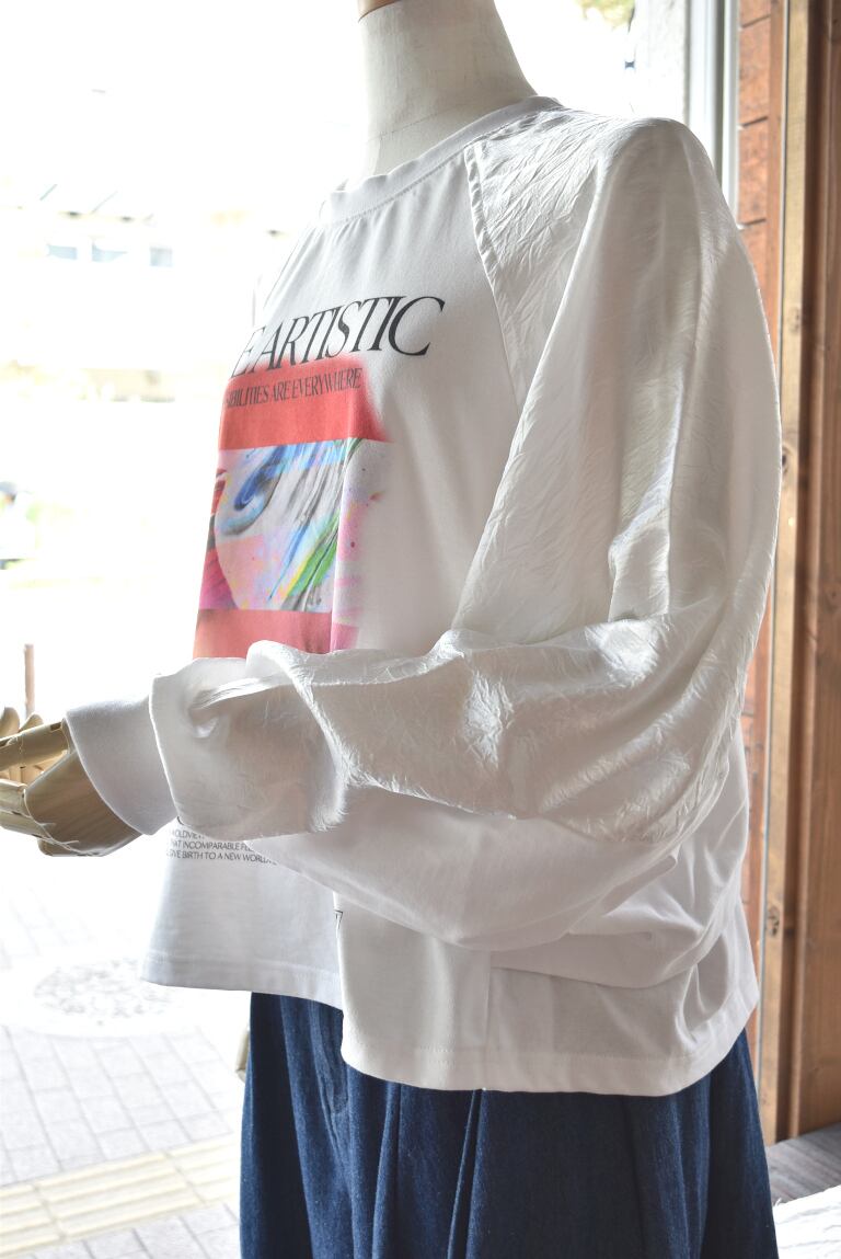 OKIRAKU(オキラク) 25A/W satin sleeve printed tee
