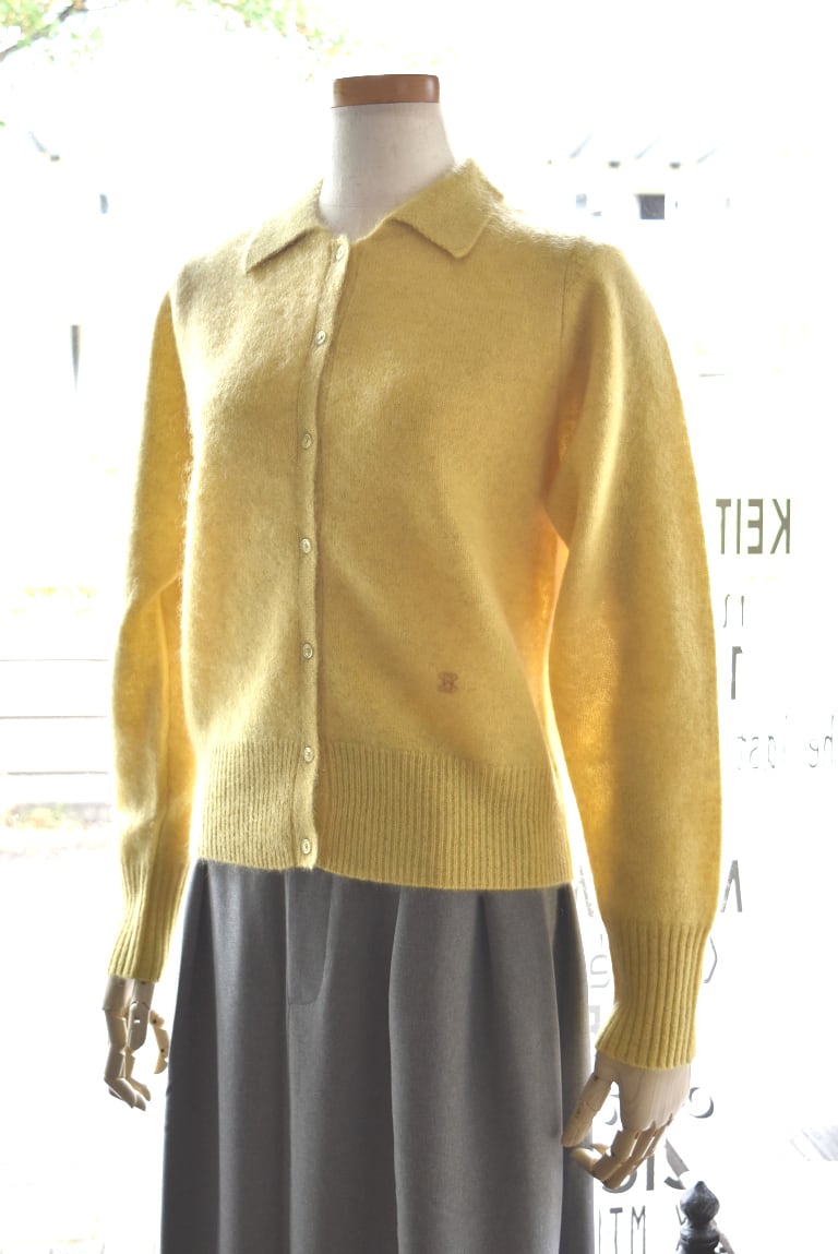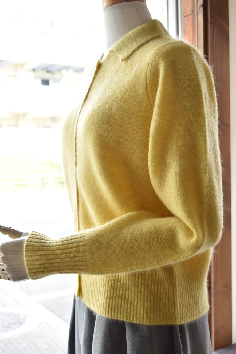 コンパクトなサイズ感がミニマルでオーセンティックな衿付きのポロカーディガン