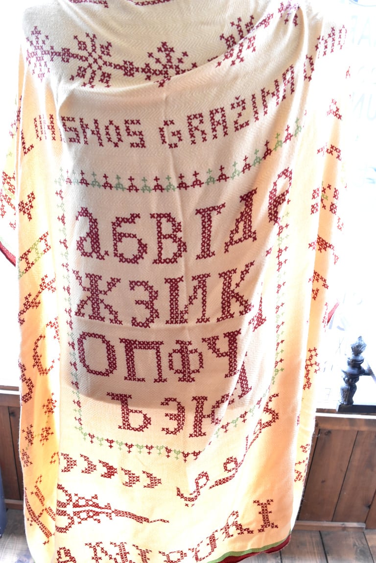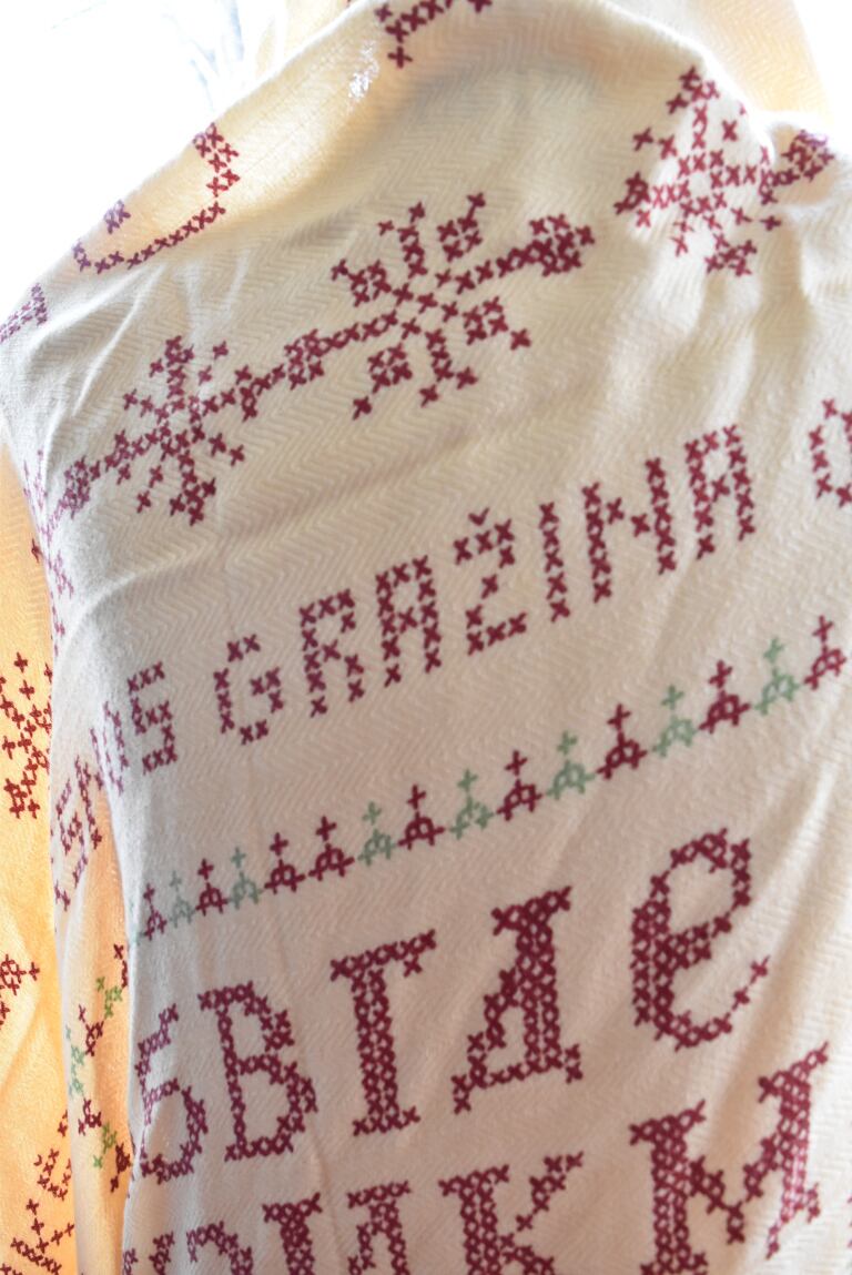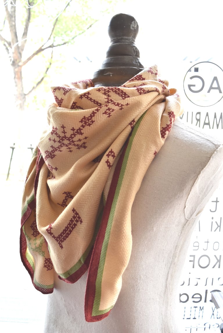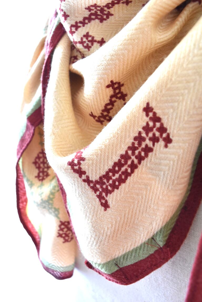 manipuri マニプリのウールシルクヘリンボーンクロスステッチバンダナ