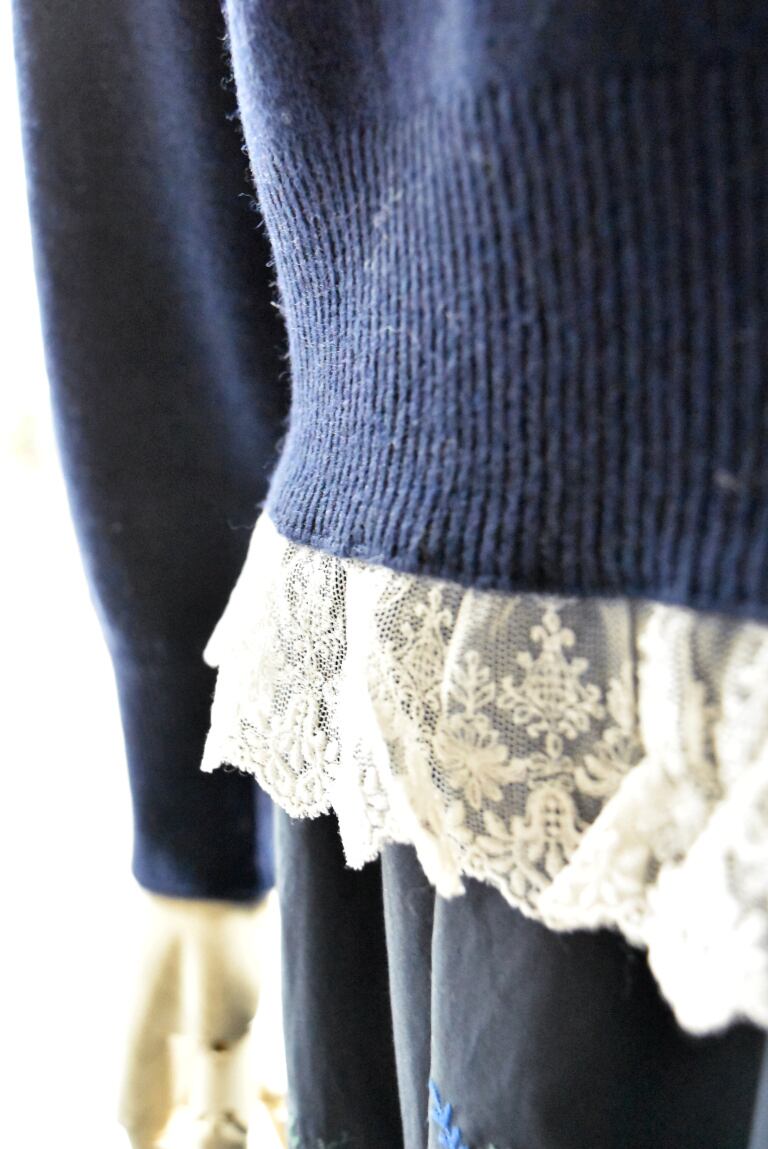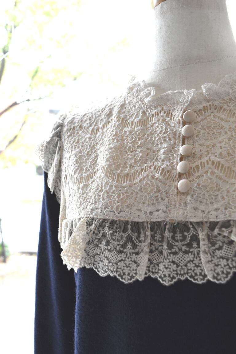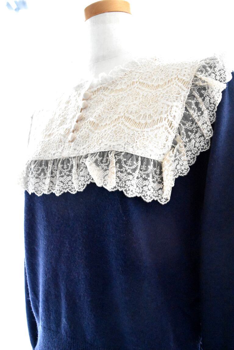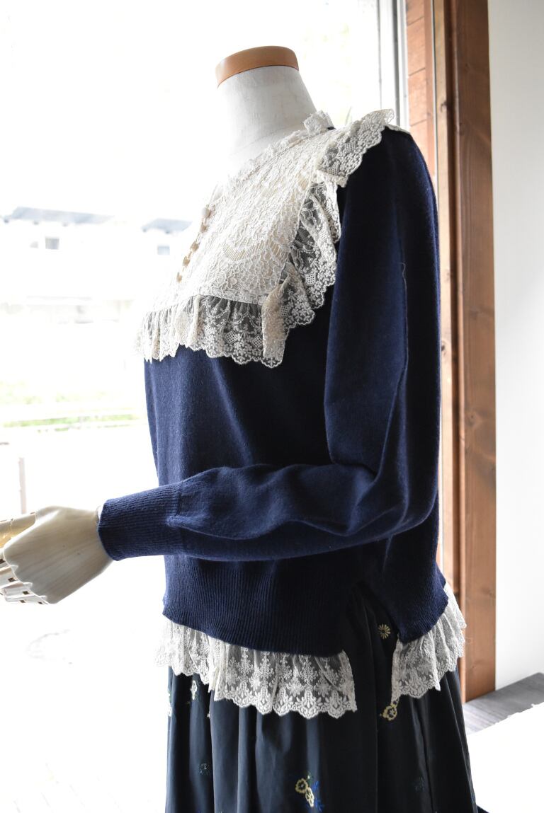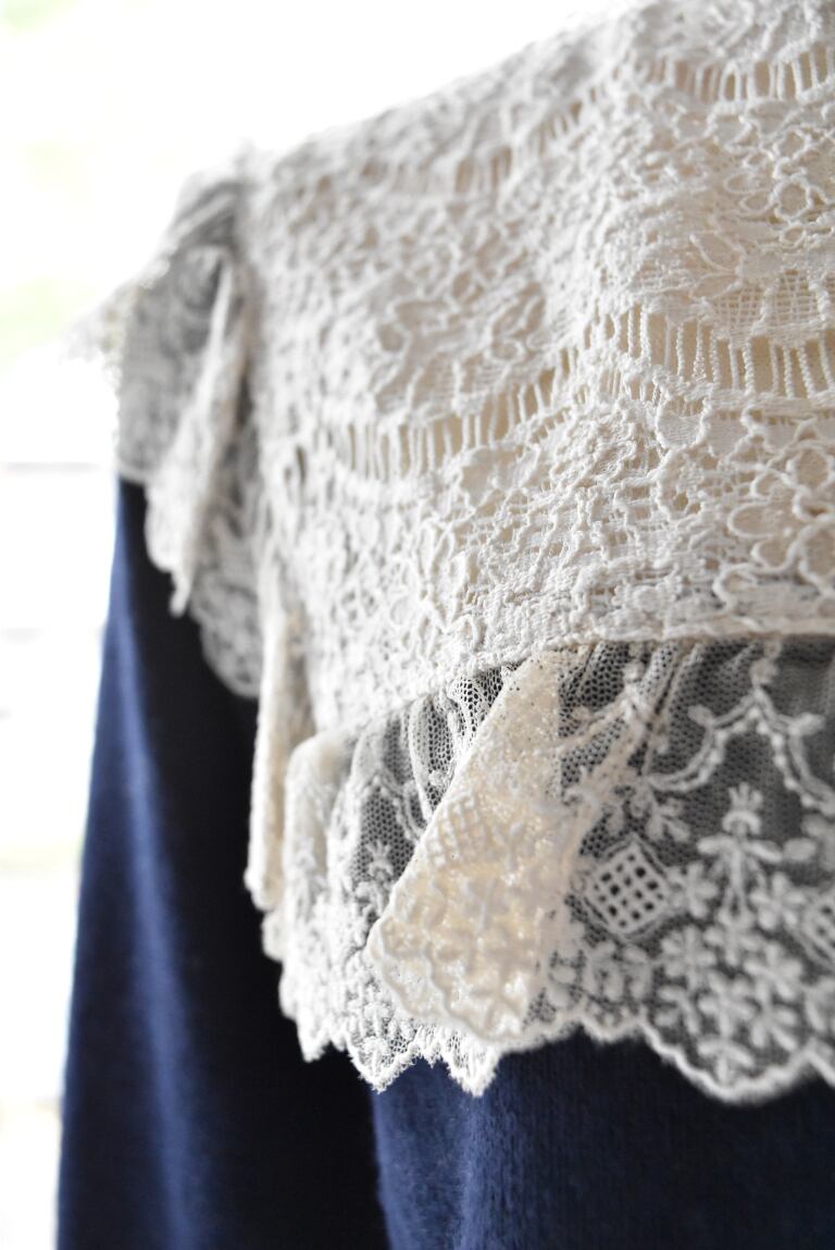 ラグジュアリーなレースをヨークに使用した上品なプルオーバーニット。