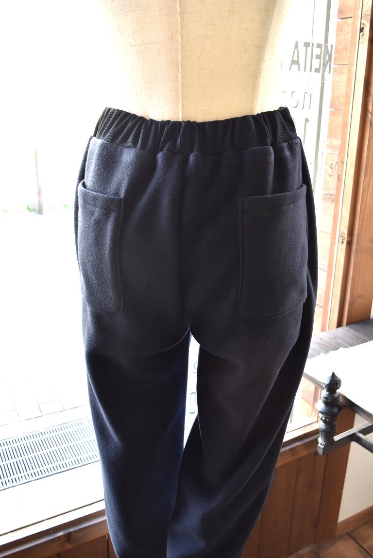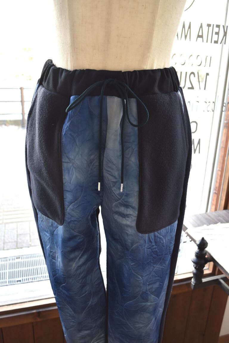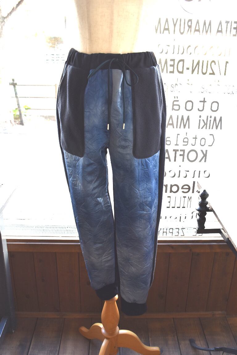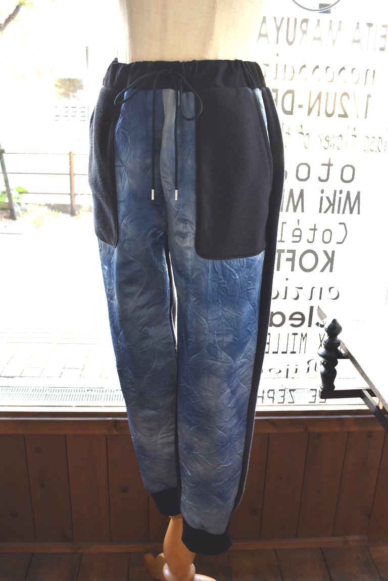 デザインは、フリースとコンビネーションのテーパードイージーパンツです。