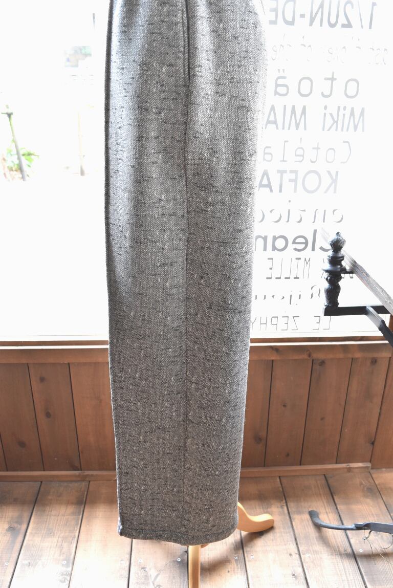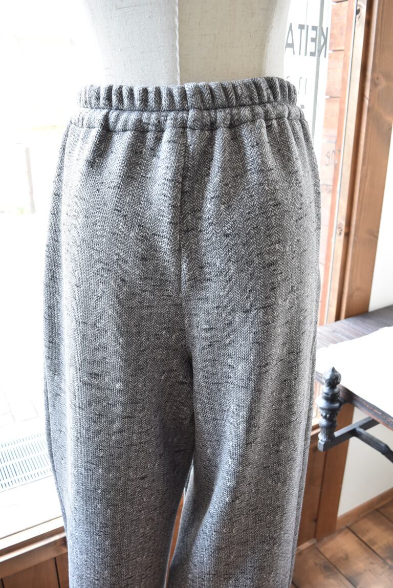 表面には、ヘリンボーンツイード調のプリントを施し、肉厚ながら軽く柔らかな肌触りで、保温性にも優れたワイドパンツ。