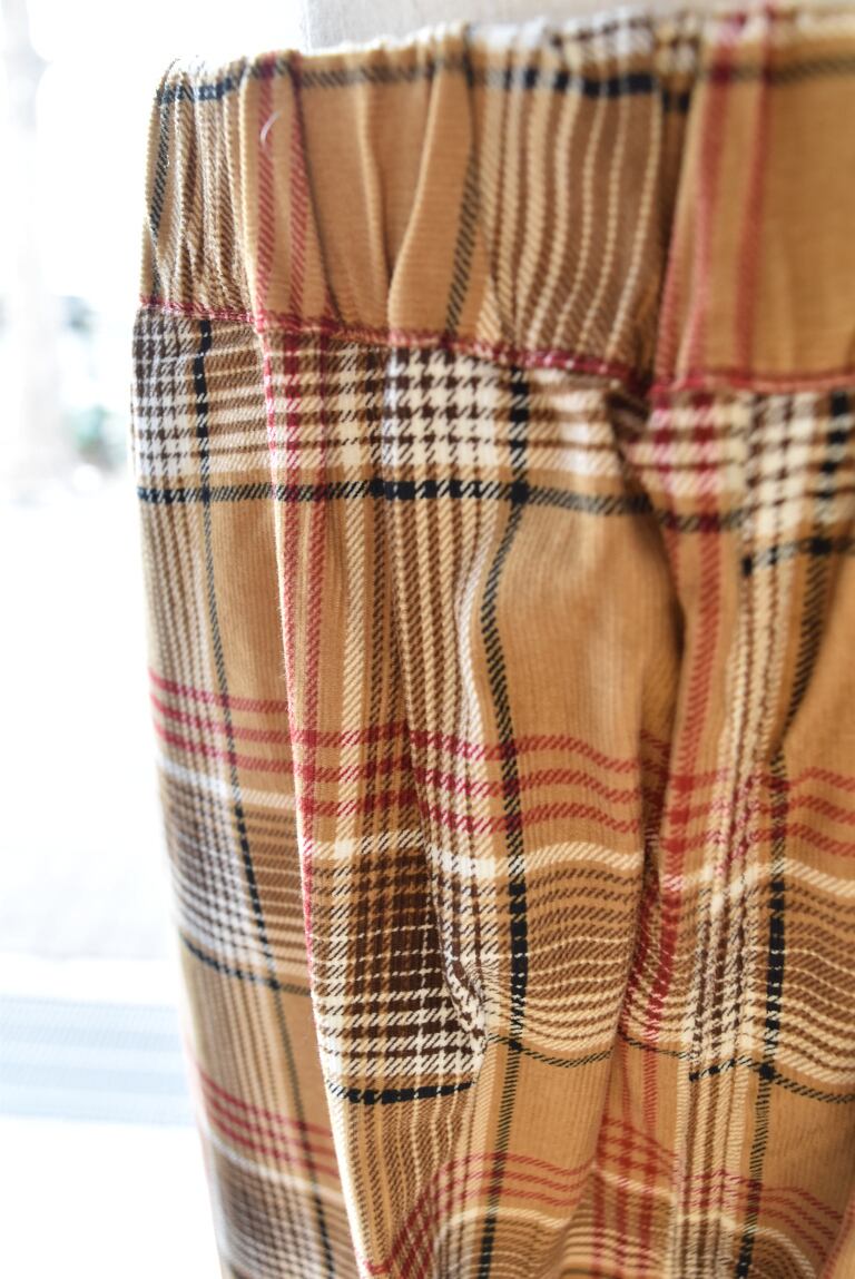 やわらかなコーデュロイ素材に、秋冬らしいチェック柄をのせた、シャツコールチェック コージーパンツです。