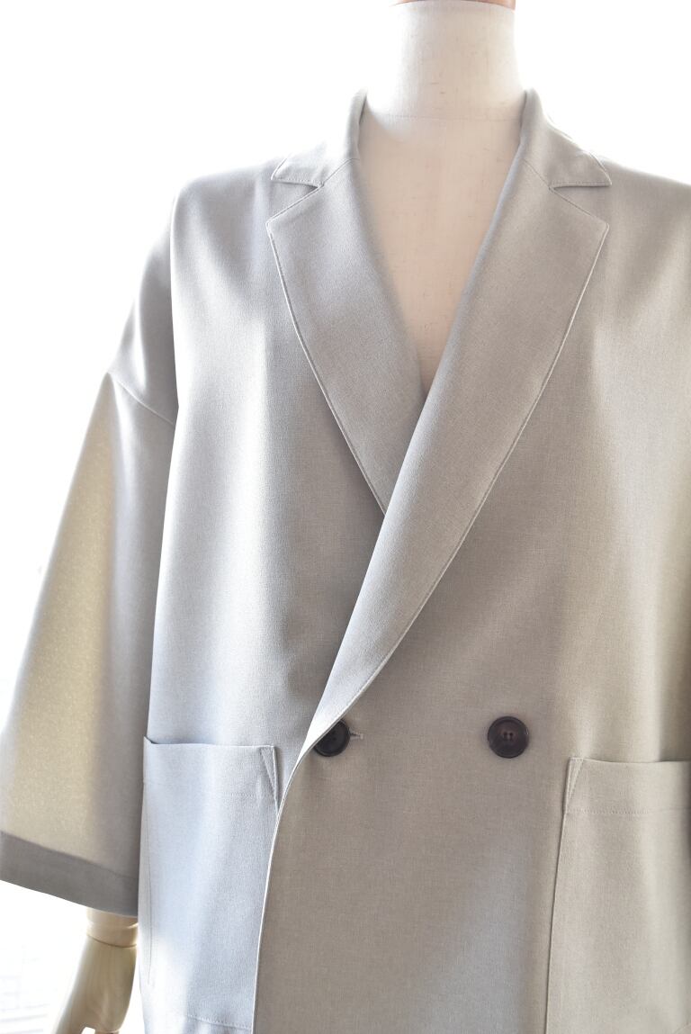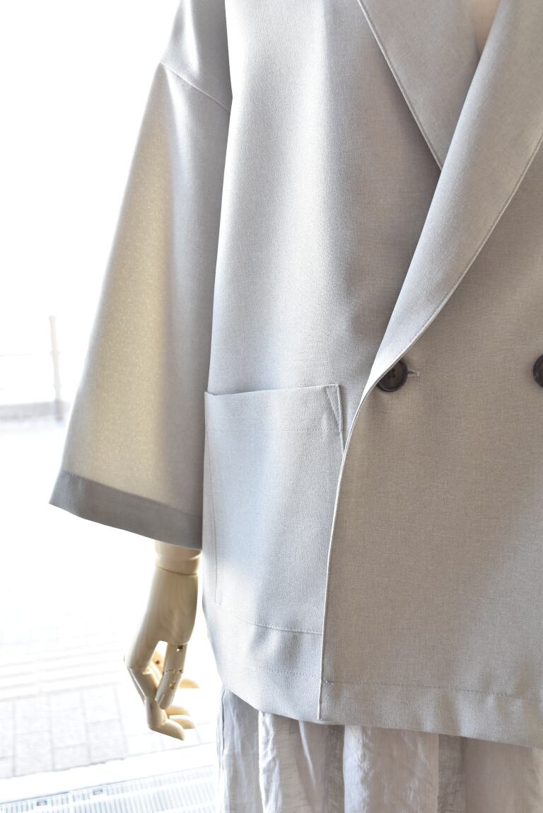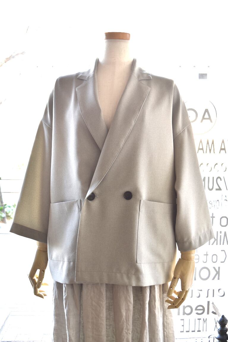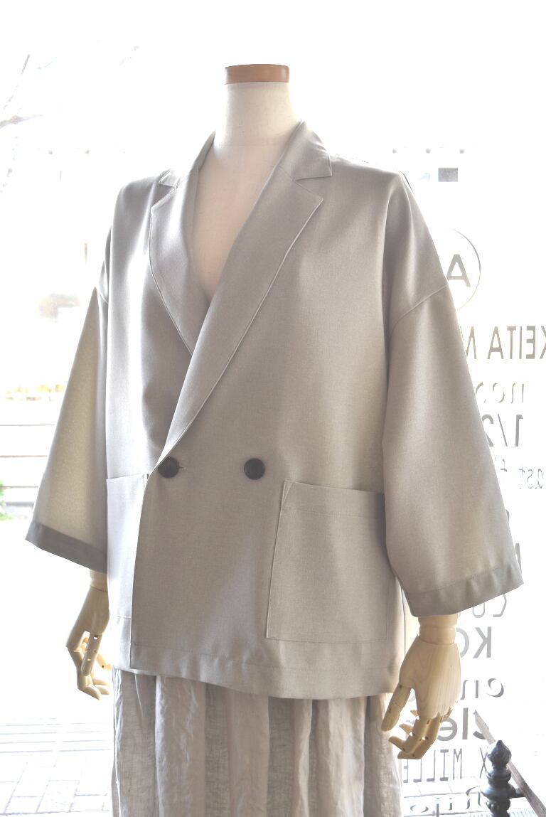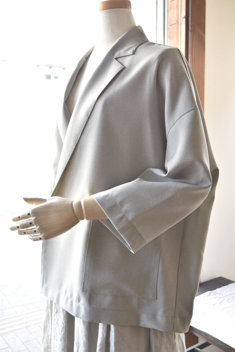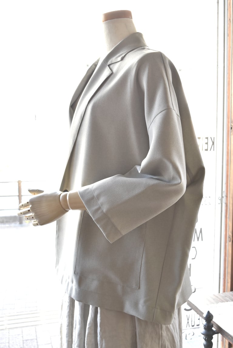 REFRAIN リフレインのテーラードジャケット 清涼感のある軽やかなポリエステル素材のジャケットです。 身頃もお袖も、ゆったりとしたサイズ感。 袖丈が少し短めの7分袖になります。 カットソーの上からでも、気楽に羽織れます。 ご自宅でお洗濯可能です。日本製 REFRAIN(リフレイン) 26S/S 7分袖丈テーラードジャケット 449915 カラー:13 サイズ:F 素材 ポリエステル 100% サイズ:F 肩幅:60cm バスト:127cm 着丈:64cm 袖丈:35cm