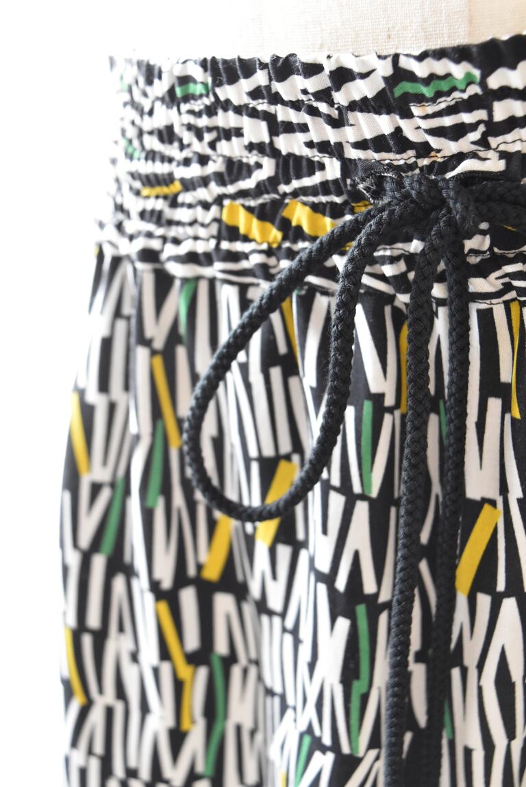 ウエストはドローコード入りのイージー仕立てにし、現代的なラフさを出しています。