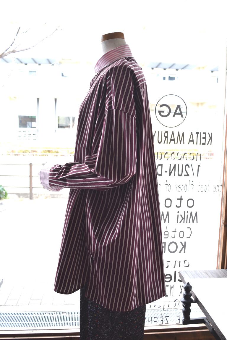 襟はコンパクト、身頃はゆとりのあるシルエットに仕上げ、カラフルに仕立てています。