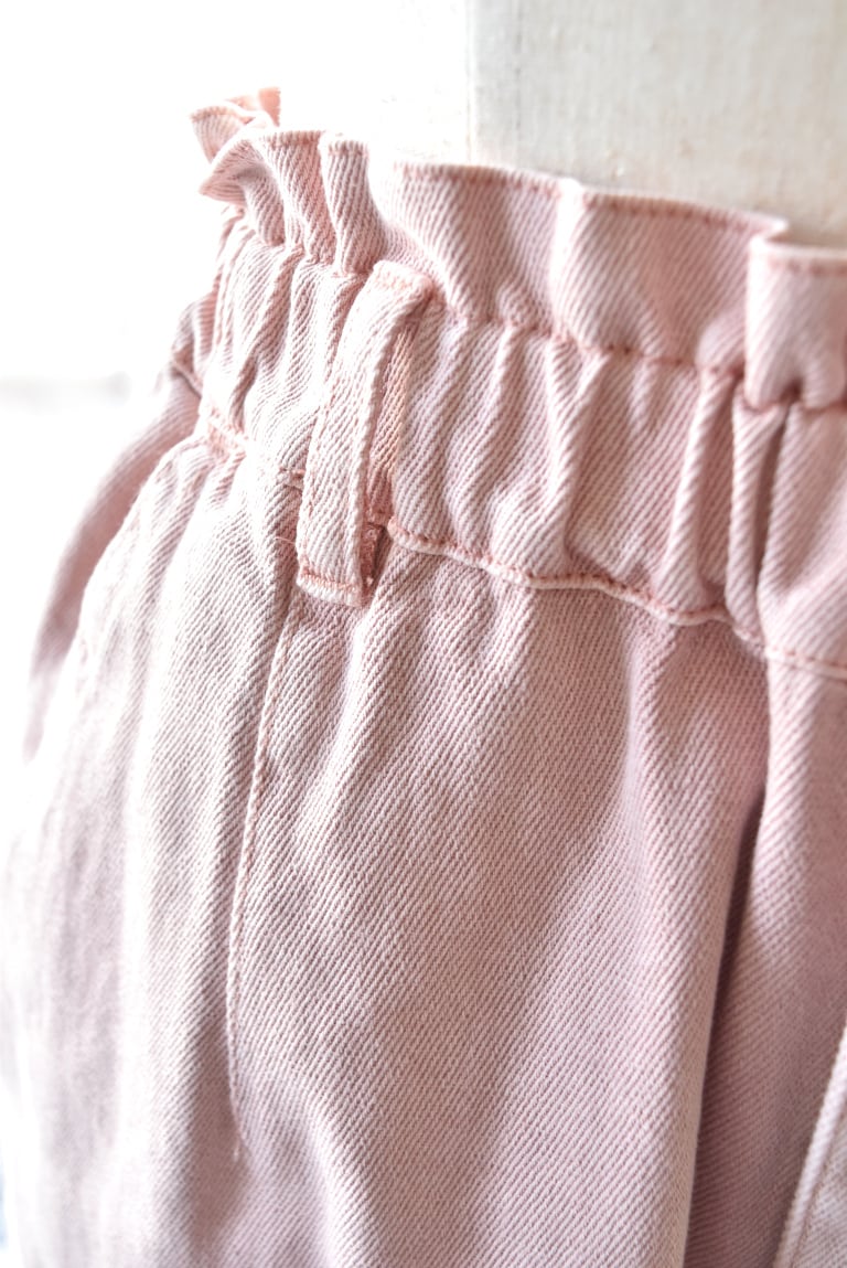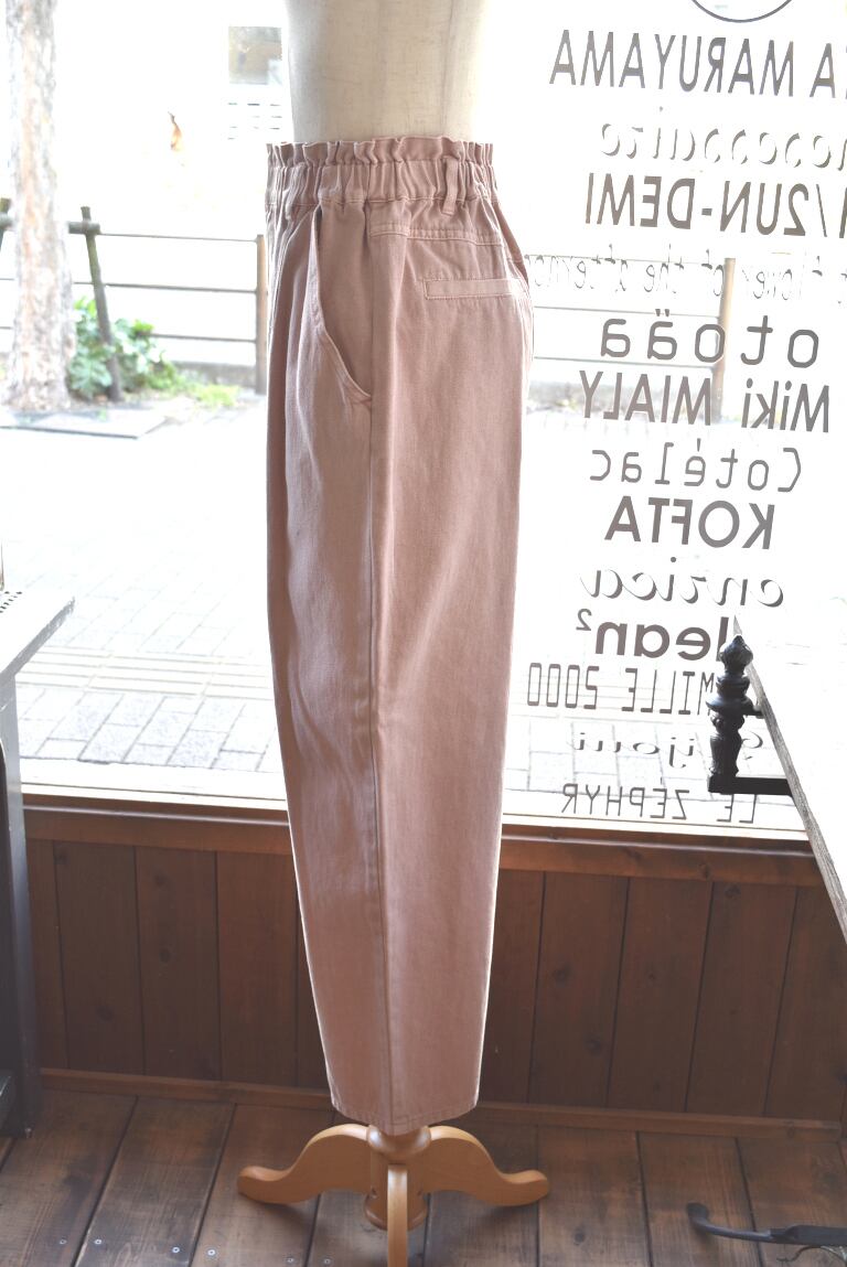 ウエストは前開きの総ゴム仕様でゆったりと。
