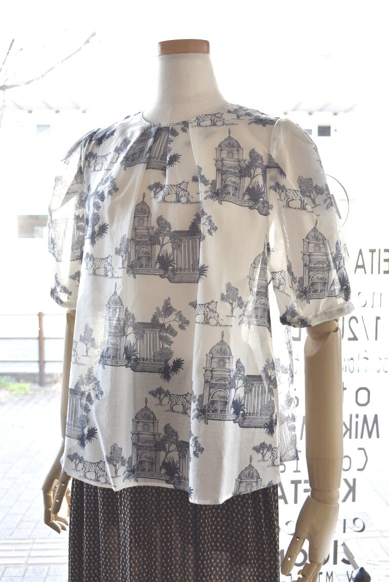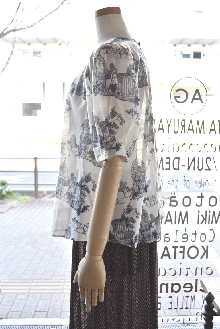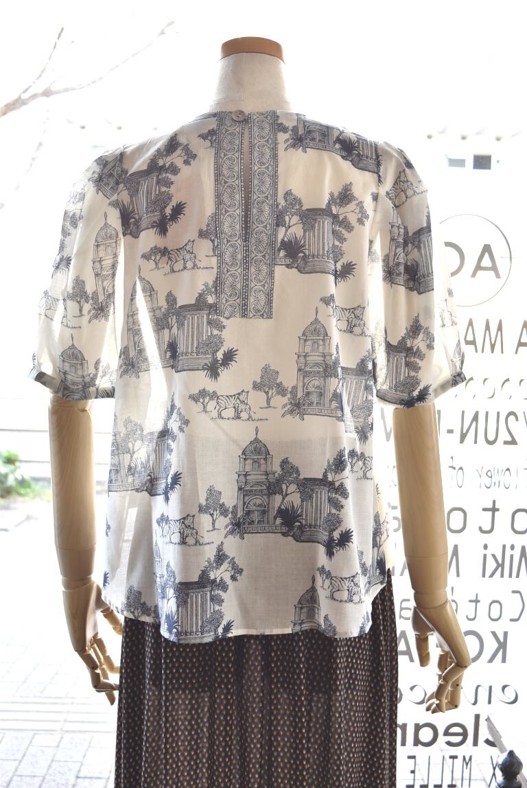 Bon vieux temps(ボンヴュータン) 26S/S プリント柄半袖ブラウス