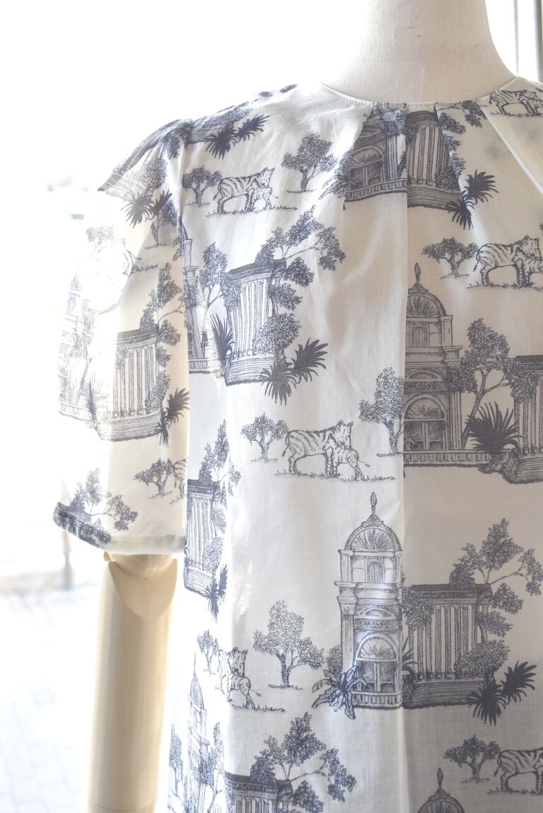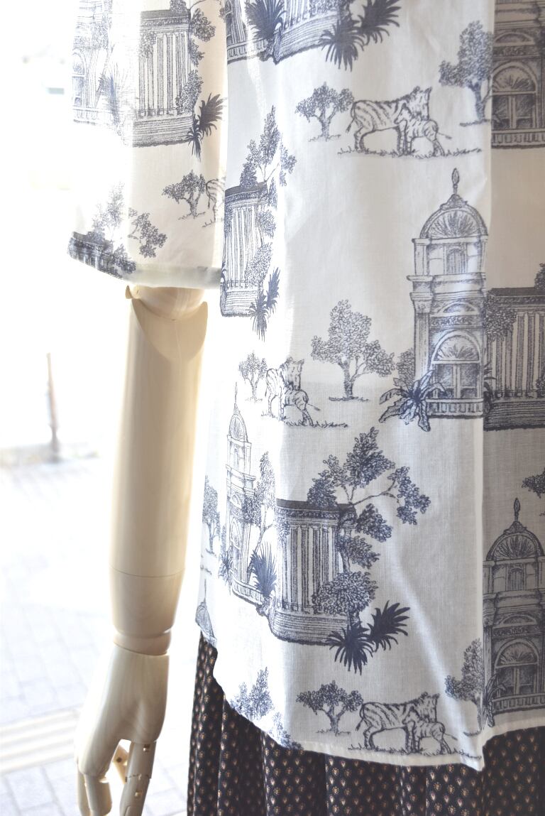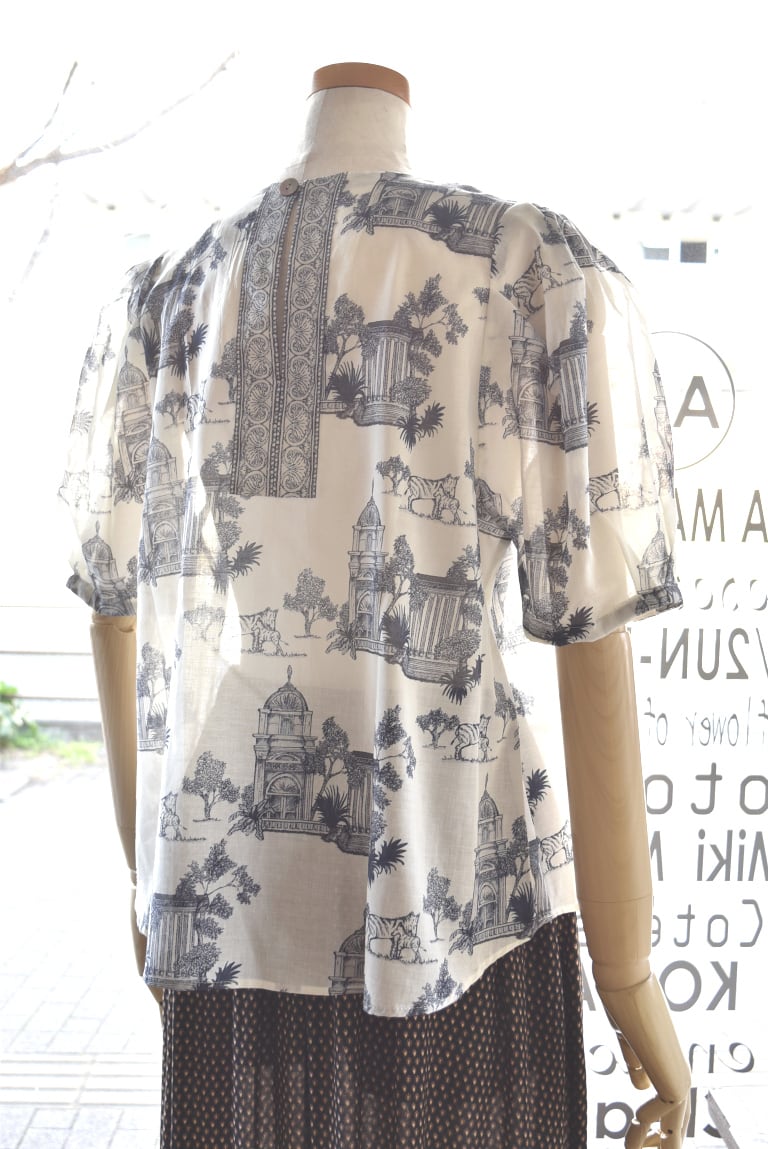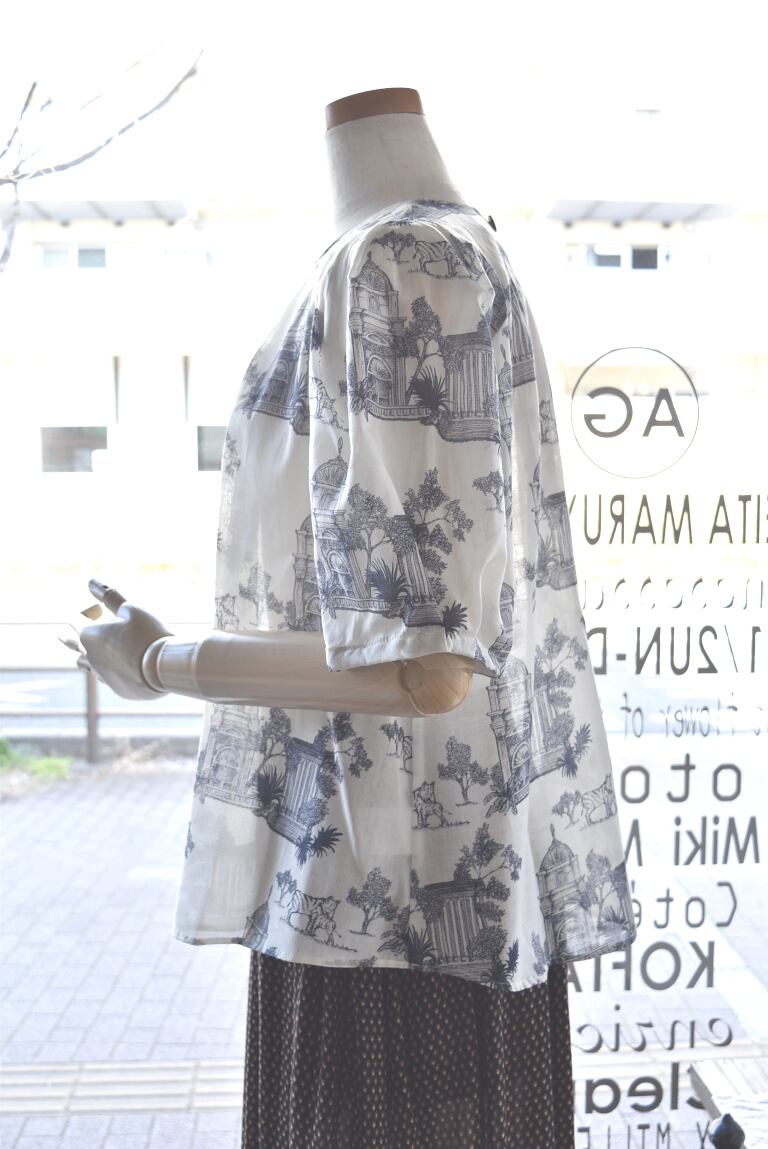 Bon vieux temps(ボンヴュータン) 26S/S プリント柄半袖ブラウス