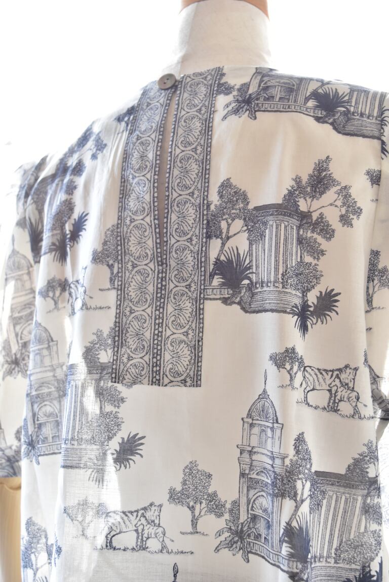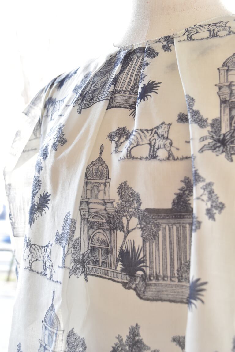 ヨーロッパのロマネスク建築とシマウマを配置した、オリジナルのプリント柄を使用しています。