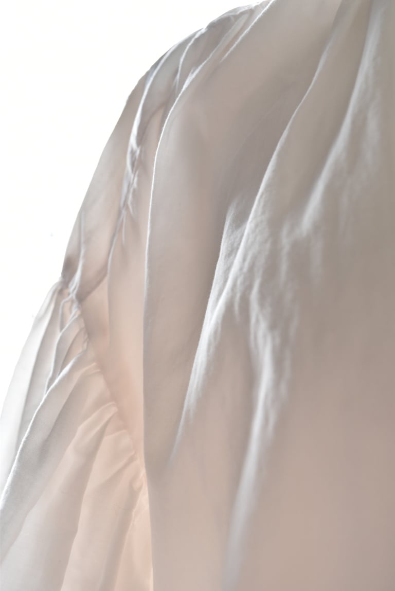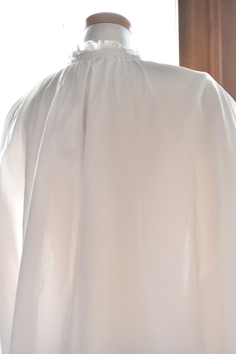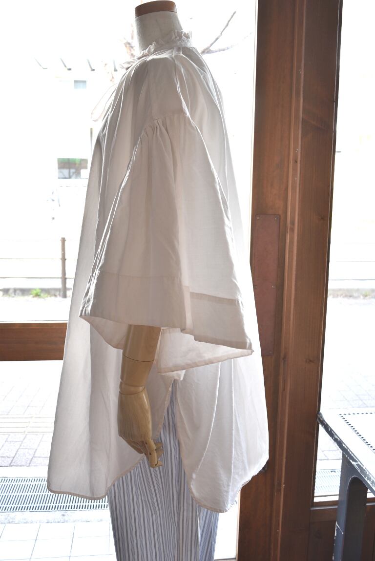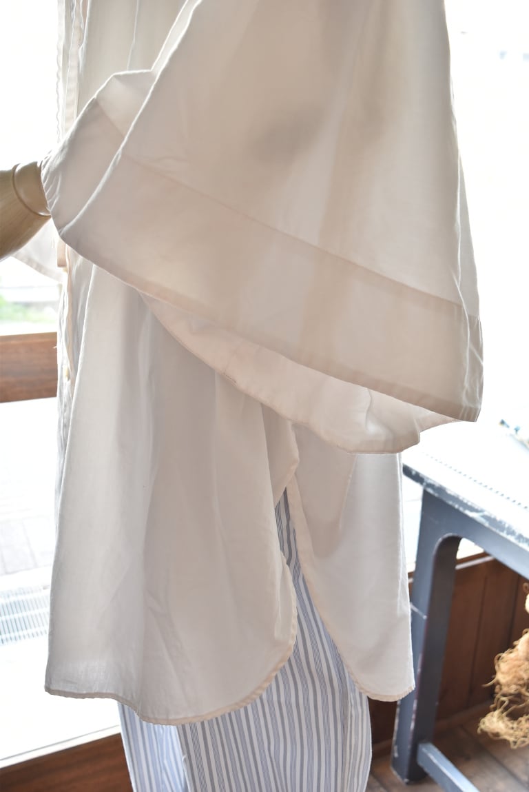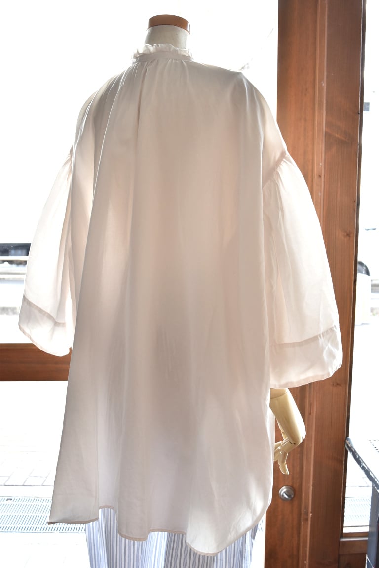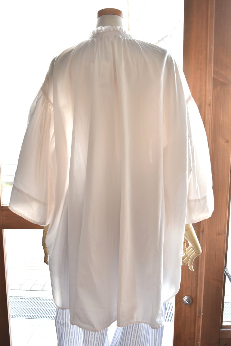 身幅はゆったりと、着丈も長めのブラウスです。