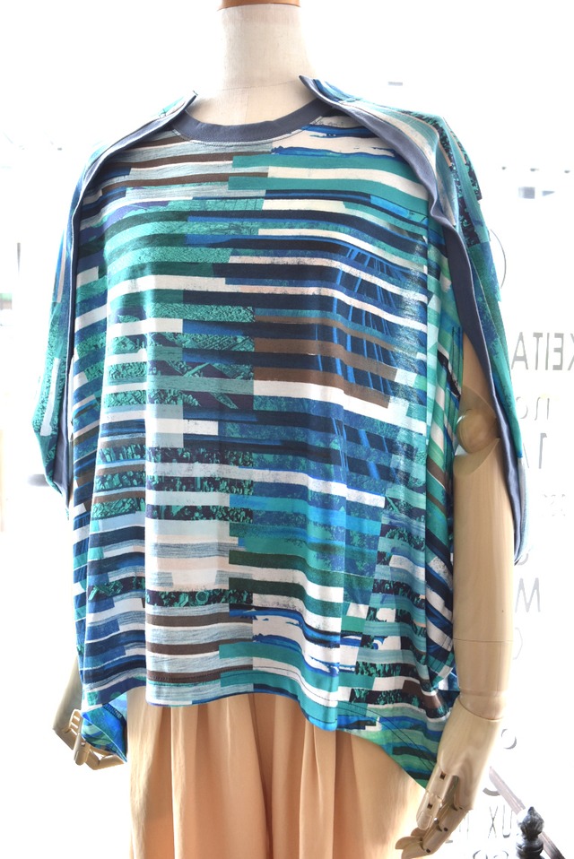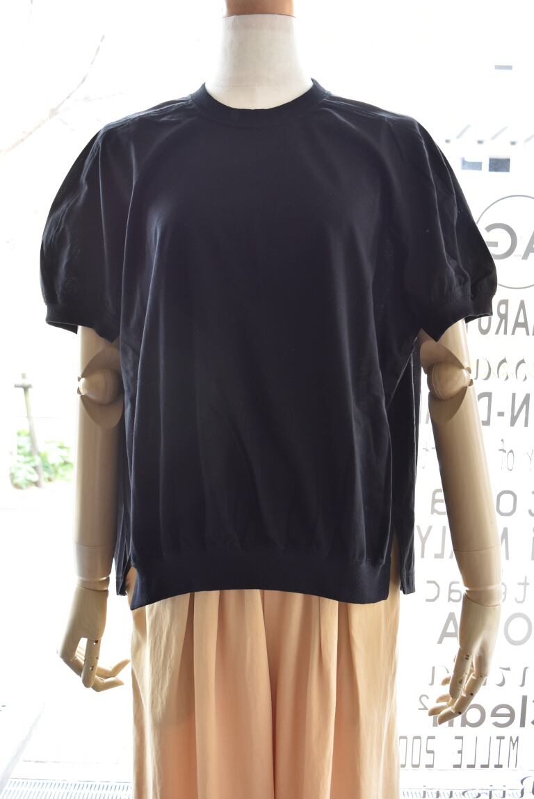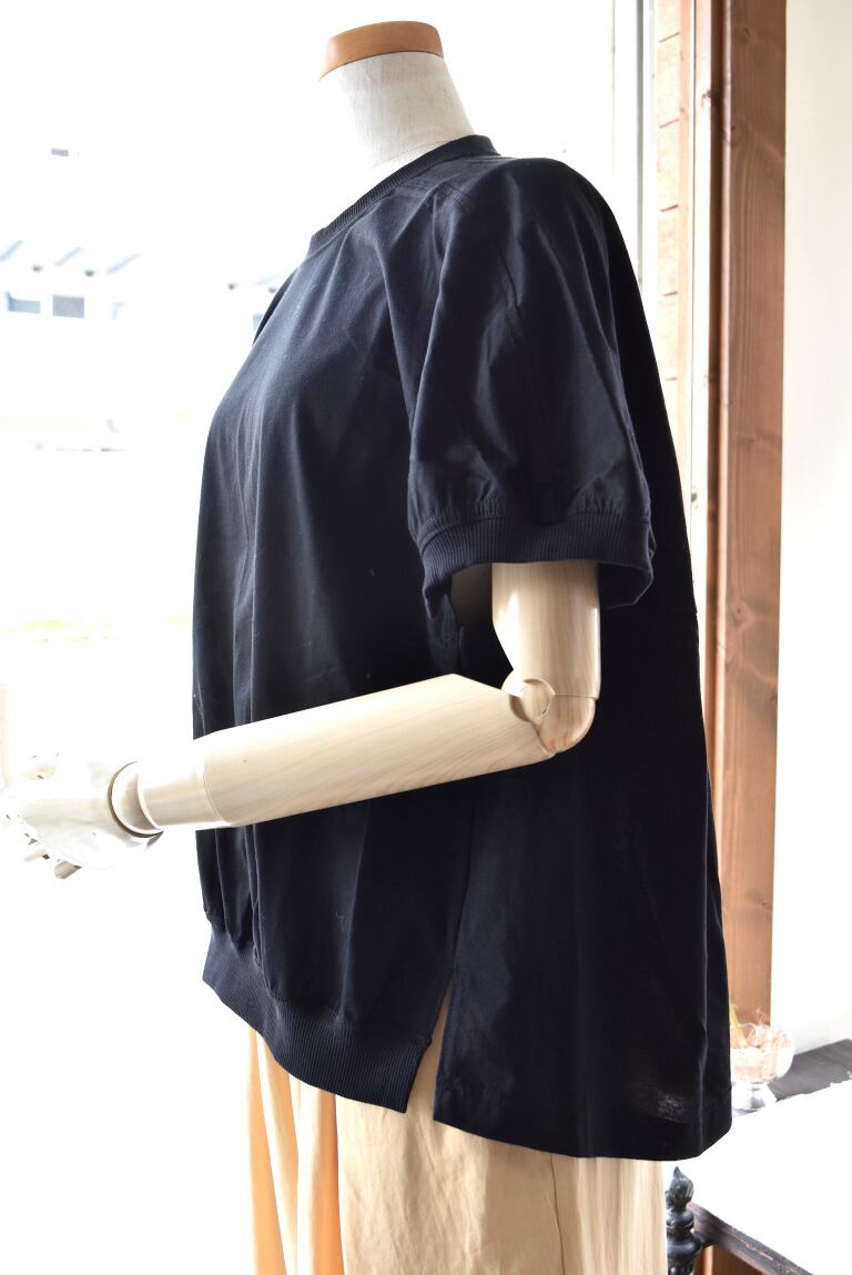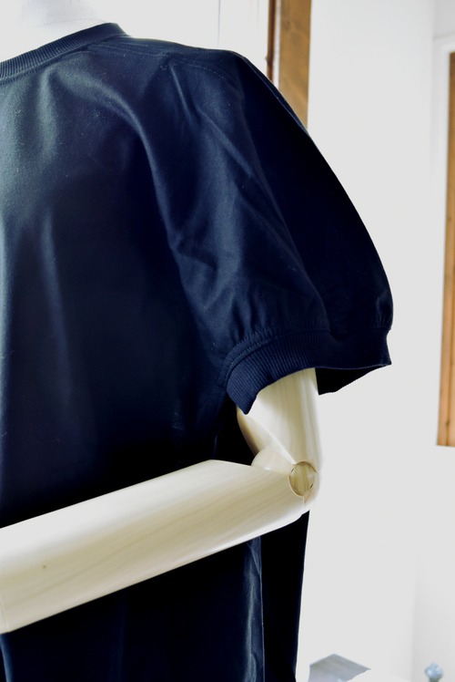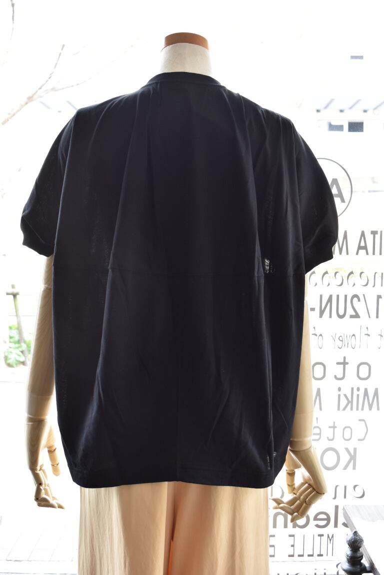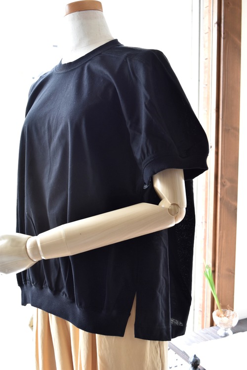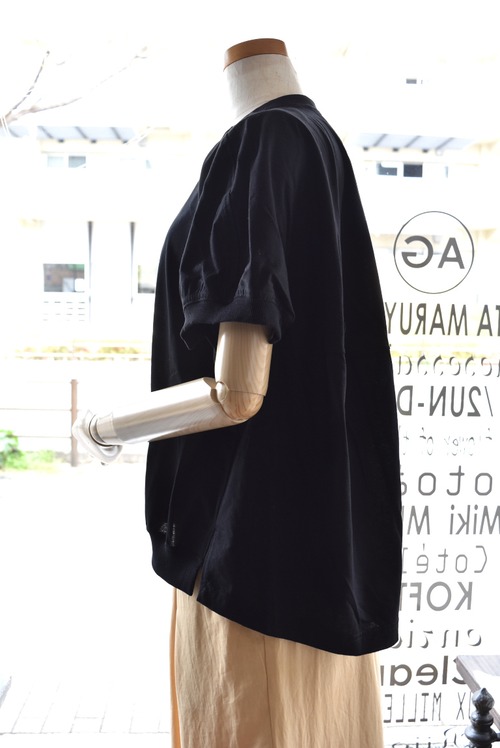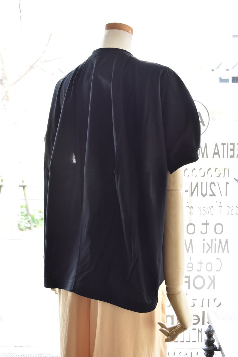 前から見ると一見シンプルなTシャツに見えますが、後ろはバルーンのように膨らんだボリュームのあるカッティングになっています。