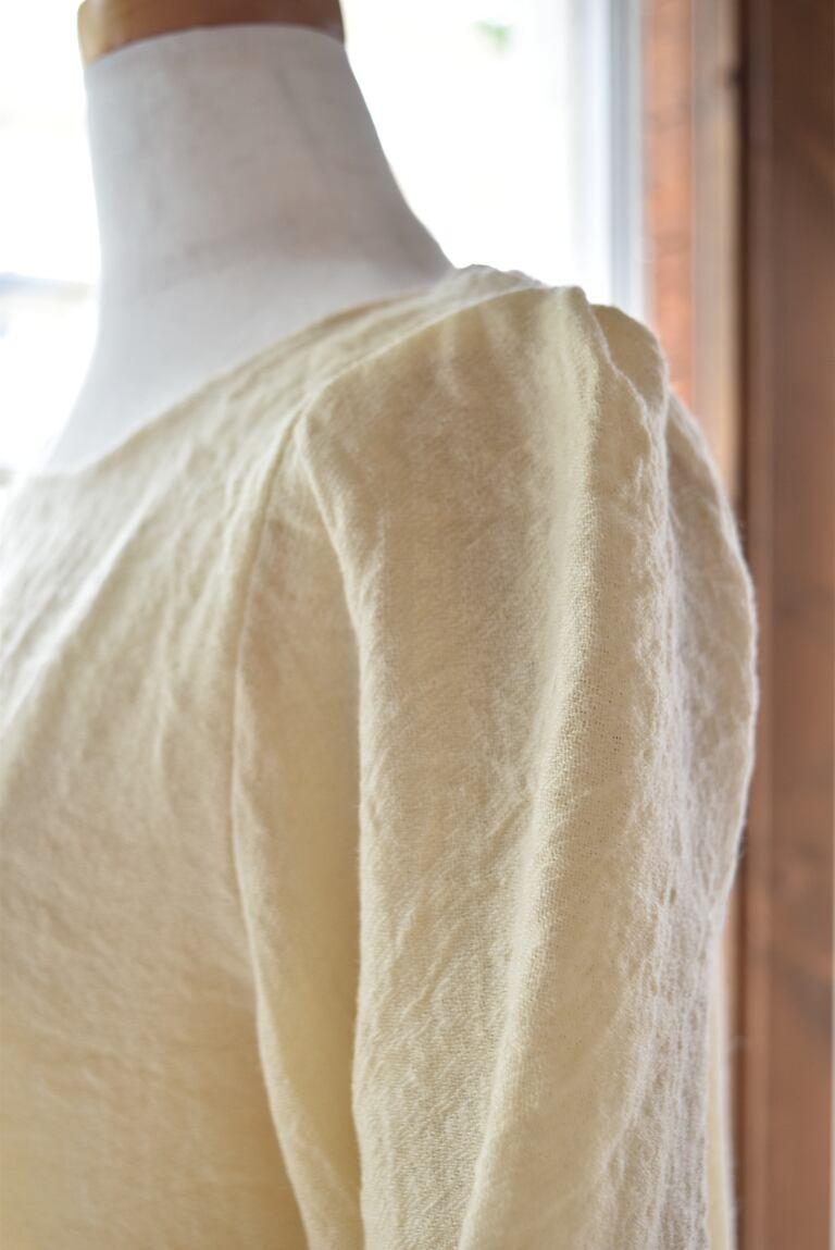 糸の太さの強弱やネップが醸し出す、ごく自然で心のこもった手作りの生地のノスタルジックな風合いと、手撚りならではの素朴感をお楽しみください。