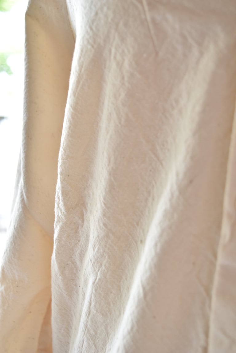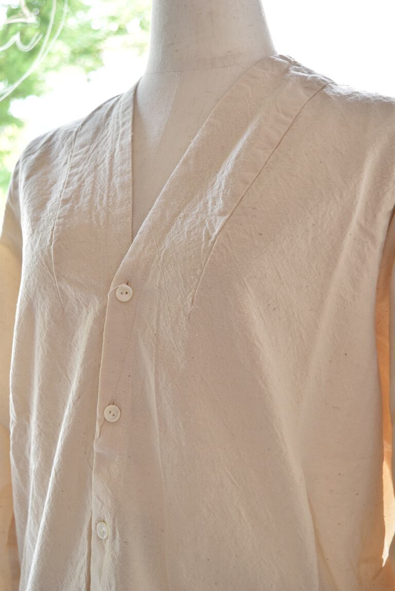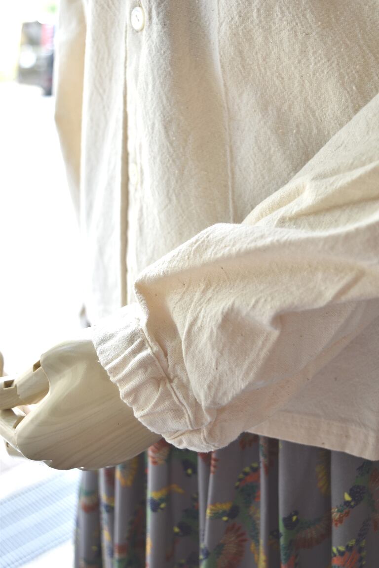 後ろに膨らみが出るバックヘムギャザーのデザインで、シャツ感覚で気軽に羽織って頂けます。