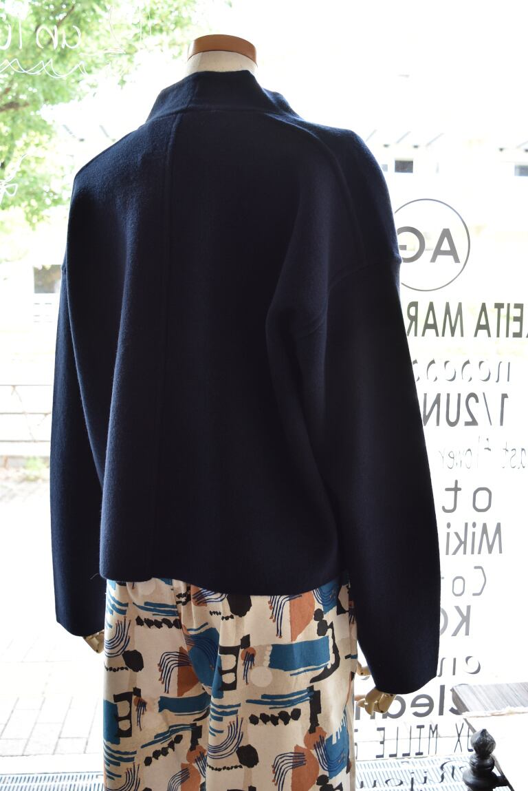 一見きちんとした布帛アイテムの様な佇まいで、ひとたび袖を通してみるとニットならではの伸縮性とリラックスした着心地の良さが嬉しい1枚です。