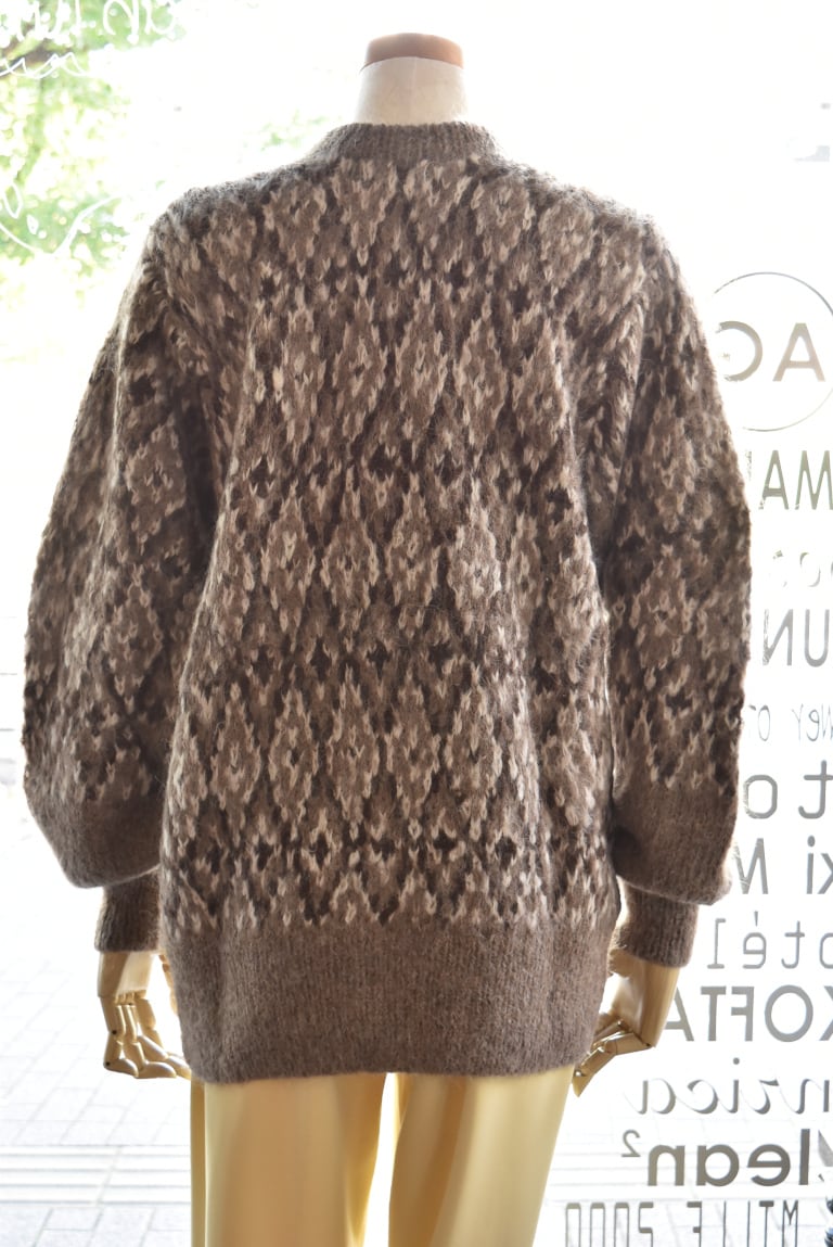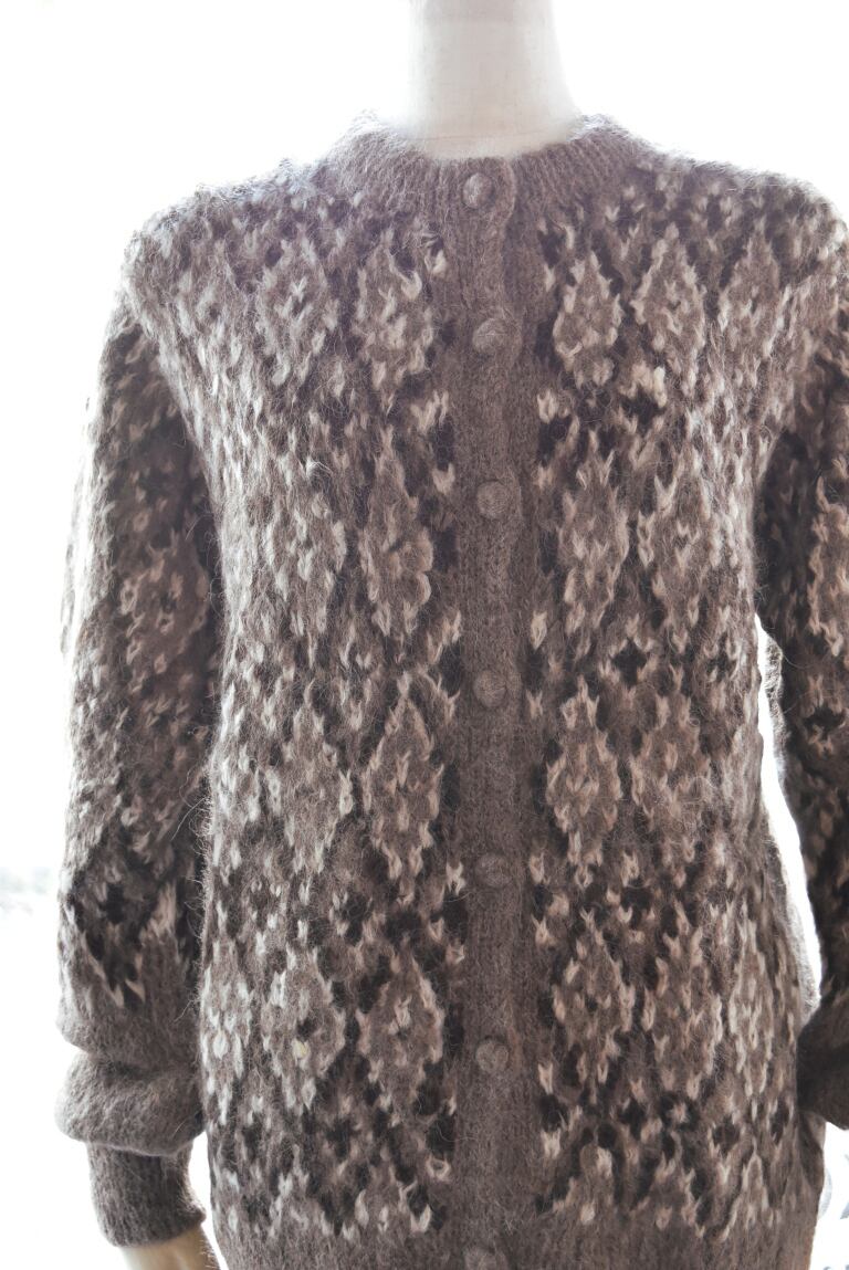 南米ペルーの標高3800mのチチカカ湖のほとりにあるPUNOという街の集落で、棒針で編まれたハンドのジャガードのニットです。