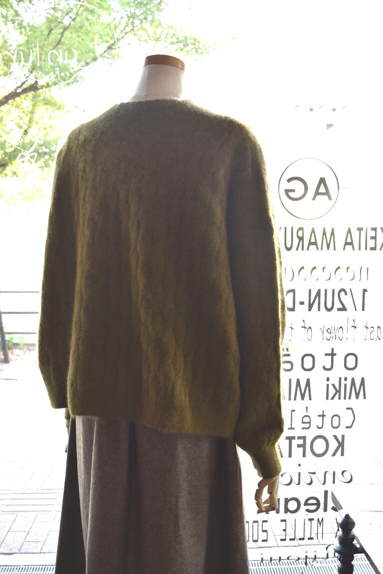 ラクーンとフォックスの糸で、ふわっと軽く暖かいニットです。