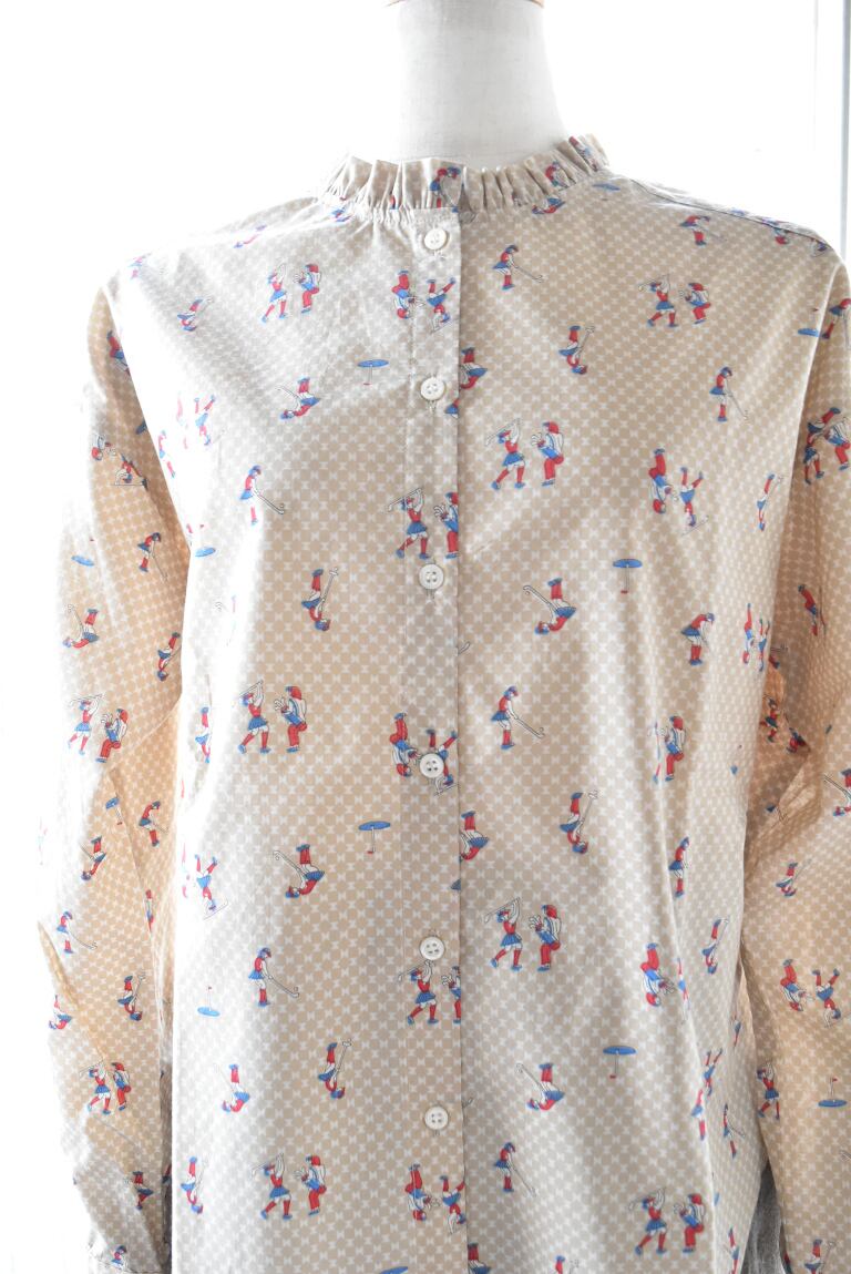 denicher デニシェの長袖ブラウス ゴルフプリントがされているレトロ感のあるブラウス。 フリル襟が可愛いです。 前開きの綿素材のブラウス。 薄手で柔らかい生地感です。 ご自宅でお洗濯可能です。日本製 denicher(デニシェ) ゴルフプリント柄ブラウス D244247 カラー:BEG サイズ:1 素材 COTTON 100% サイズ:2 肩幅:52.5cm バスト:101cm 着丈:前 52.5cm 後ろ 57.5cm 袖丈:47cm