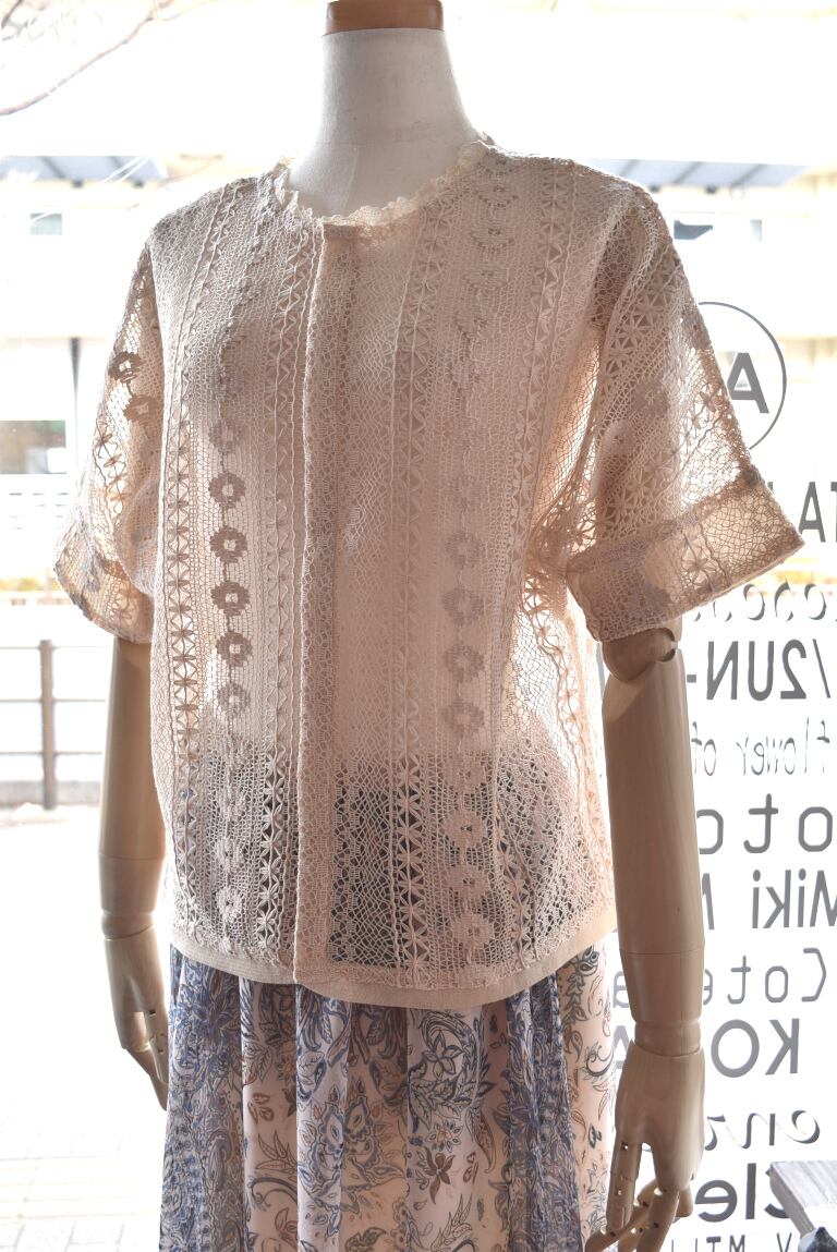 素朴なコットンラッセルレースに、繊細なアンドレロード社のレーステープを使い合わせたトップスです。