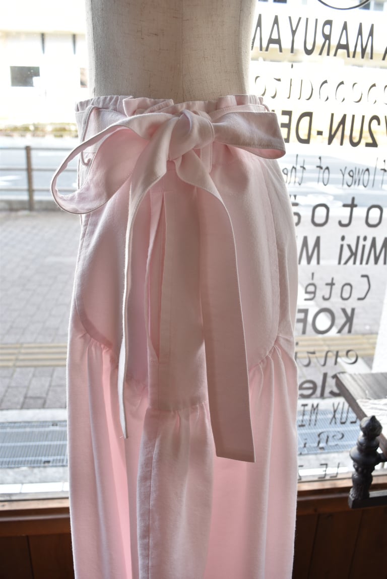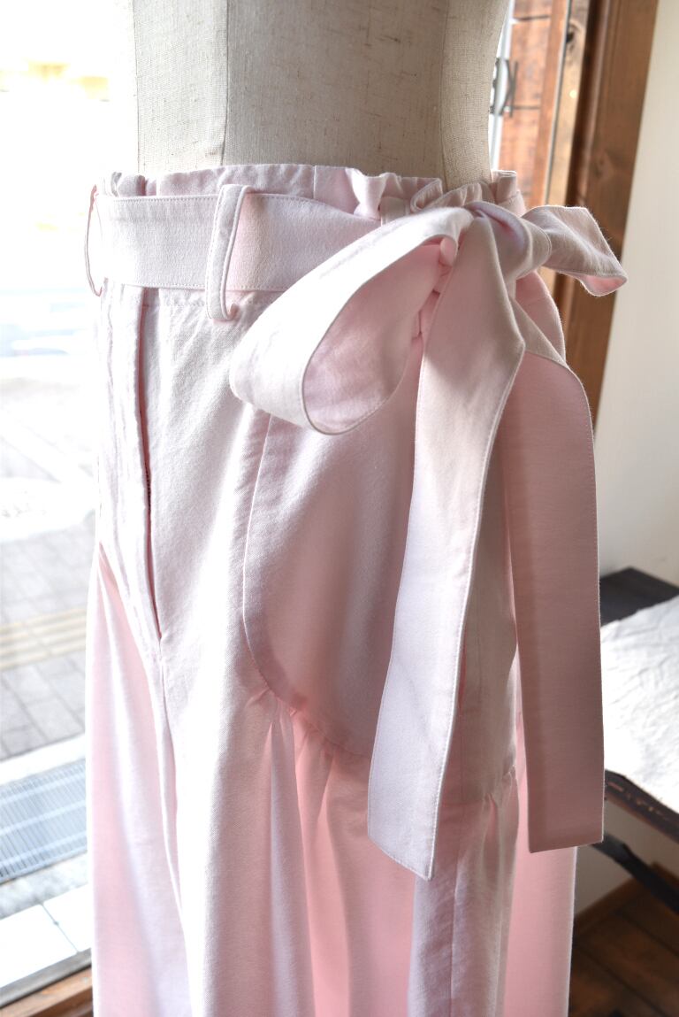 ウエストはリボンベルトで絞って調節するデザインになります。